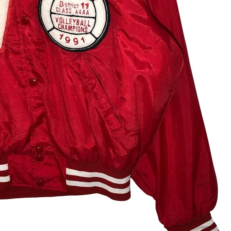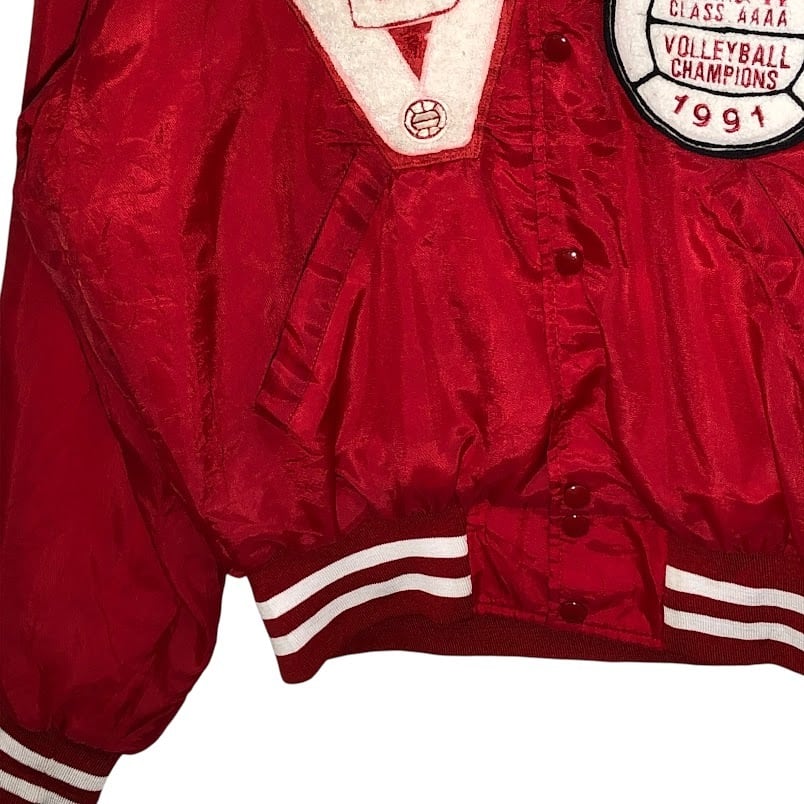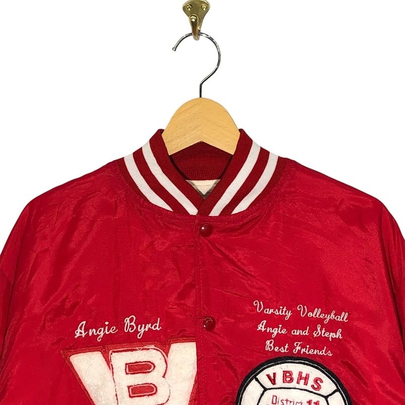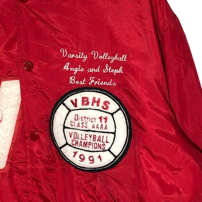 90's vintage 90年代 ヴィンテージ NEFF スタジャン バレーボールチャンピオン VBHS ナイロンブルゾン フロントバック刺繍 USA製 Lサイズ レッド | OASISCLOTHING 海外古着屋【公式】通販サイト
