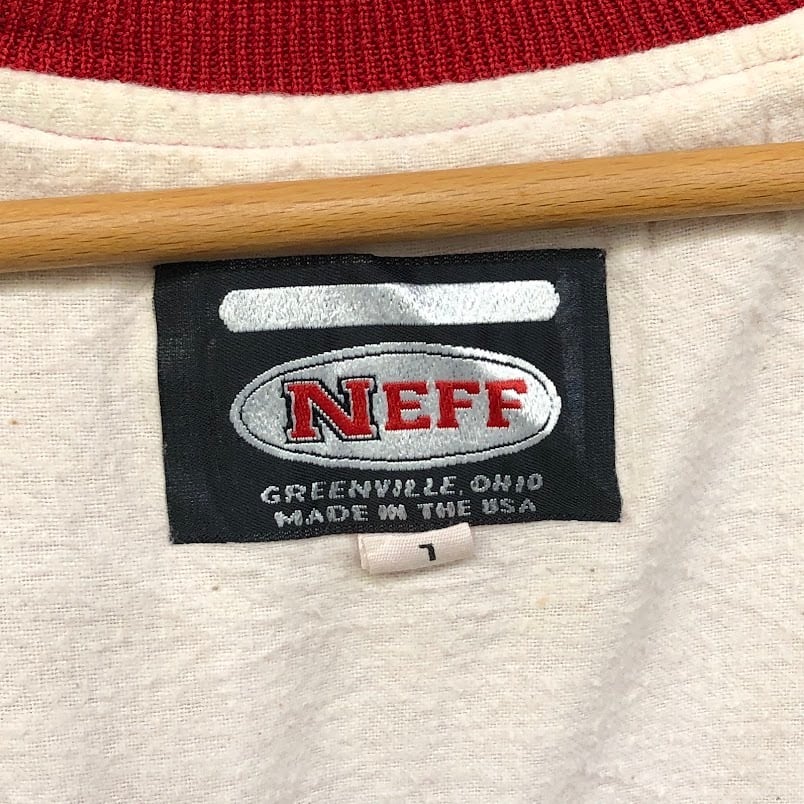 商品名:90's vintage 90年代 ヴィンテージ NEFF スタジャン バレーボールチャンピオン VBHS ナイロンブルゾン フロントバック刺繍 USA製 Lサイズ レッド