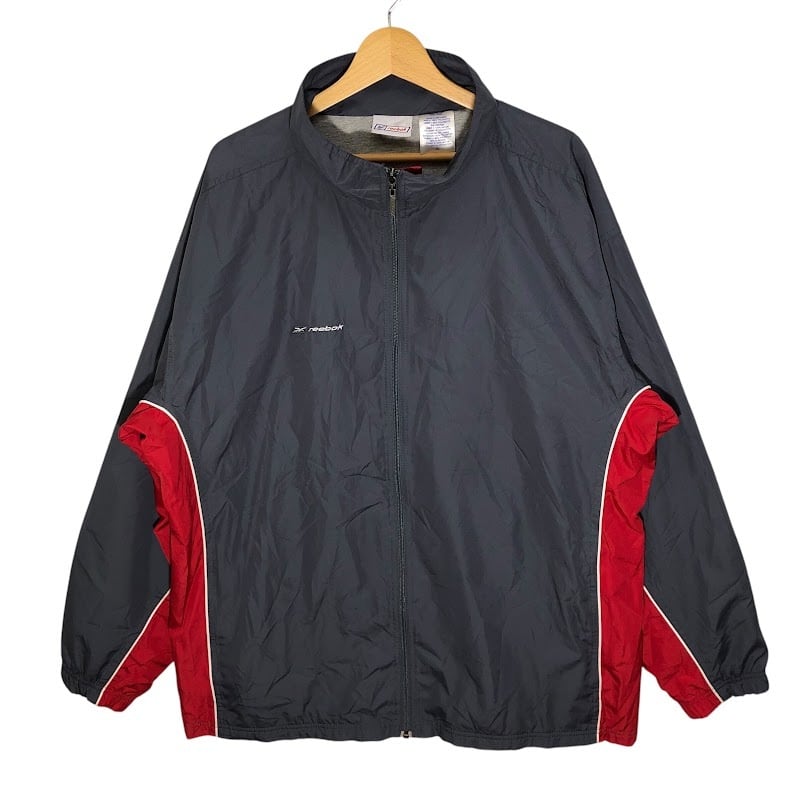Reebok リーボック ナイロンジャケット ワンポイント刺繡 オーバーサイズ ビッグシルエット SRILANKA製 XLサイズ グレー レッド | OASISCLOTHING 海外古着屋【公式】通販サイト