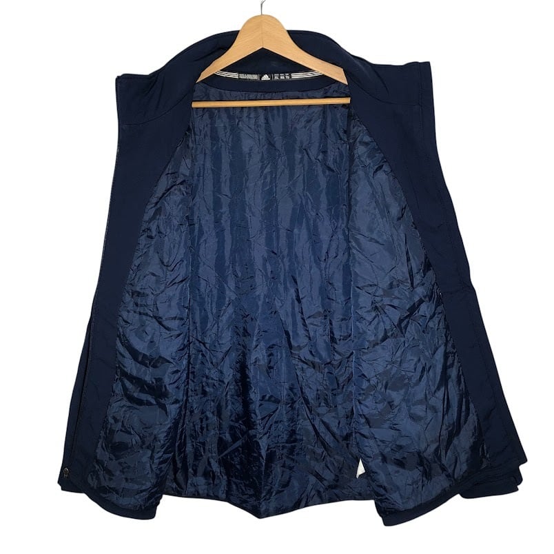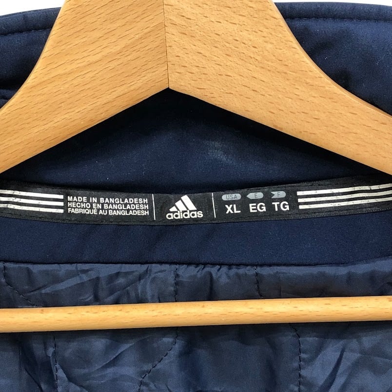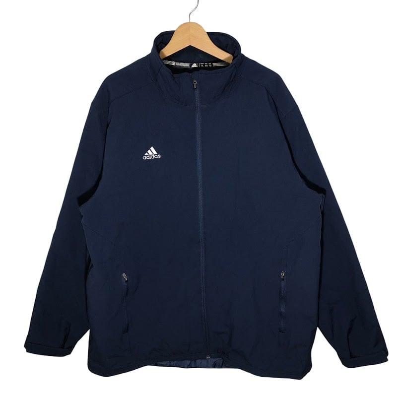 adidas アディダス ジャケット 裏地キルティング フルジップ アウター 長袖 ワンポイント刺繡 オーバーサイズ ビッグシルエット Banglagesh製 XLサイズ ネイビー | OASISCLOTHING 海外古着屋【公式】通販サイト