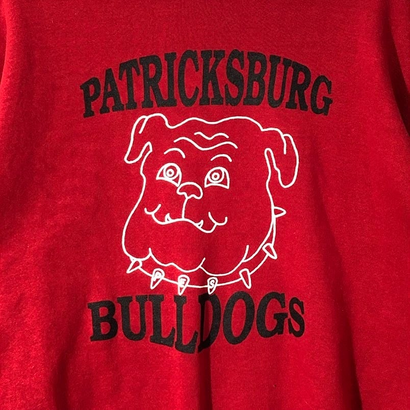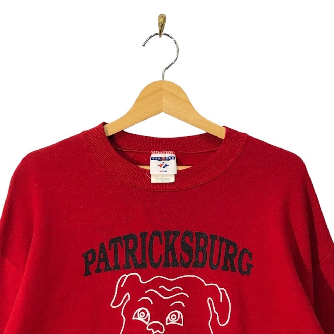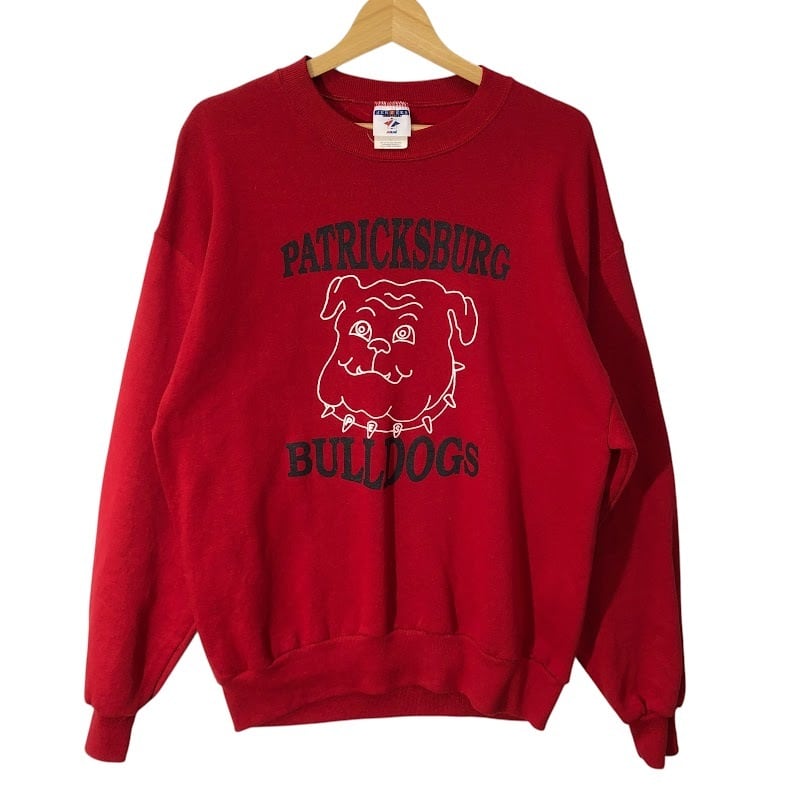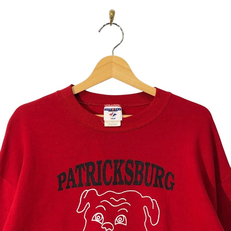 90's vintage 90年代 ヴィンテージ JERZEES ジャージーズ PATRICSBURG BLLDOGS カレッジ アニマルプリント スウェット トレーナー 長袖 フロントプリント オーバーサイズ ビッグシルエット レッド | OASISCLOTHING 海外古着屋【公式】通販サイト