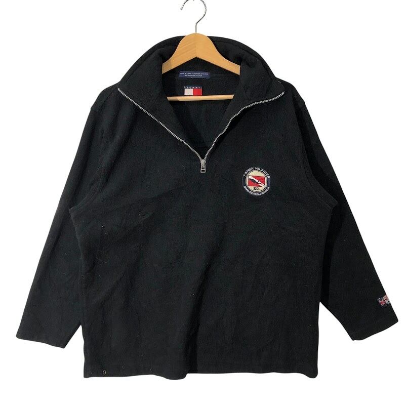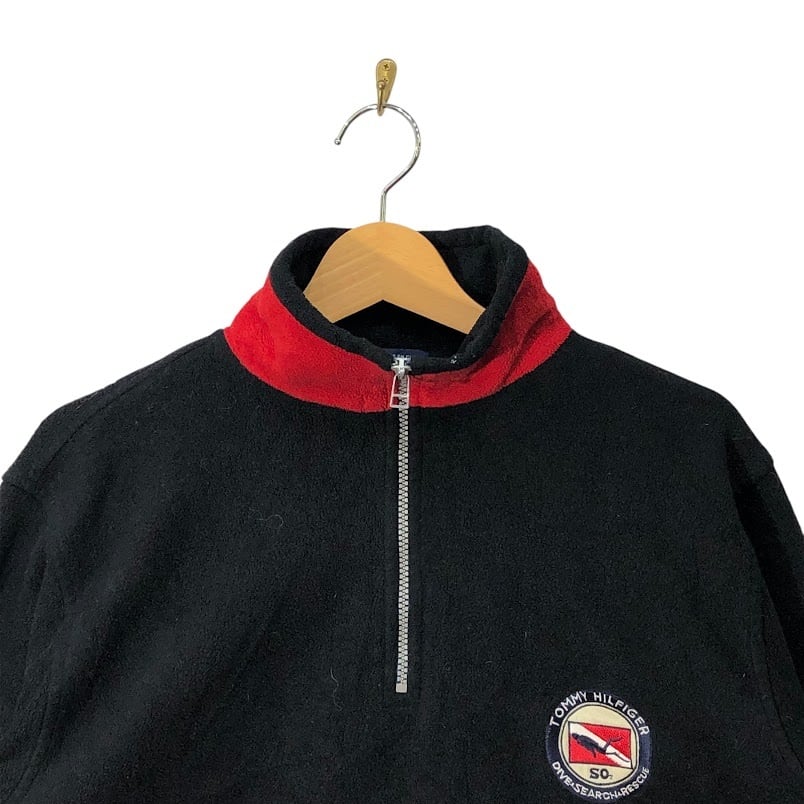 90's vintage 90年代 ヴィンテージ TOMMY HILFIGER トミーヒルフィガー フラッグタグ フリースプルオーバー DIVE SEARCH RECUE ハーフジップ プルオーバー 長袖 ワンポイント刺繡 CHINA製 Mサイズ ブラック | OASISCLOTHING 海外古着屋【公式】通販サイト