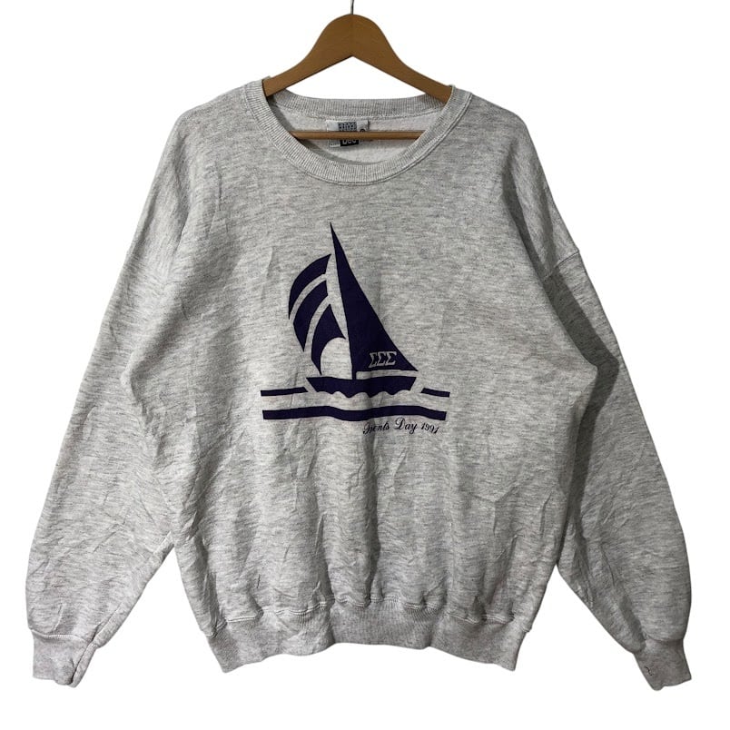 90's vintage 90年代 Lee リー HEAVY WEIGHT スウェット トレーナー フロントプリント オーバーサイズ ビッグシルエット クルーネック USA製 XLサイズ ライトグレー ホワイトグレー | OASISCLOTHING 海外古着屋【公式】通販サイト