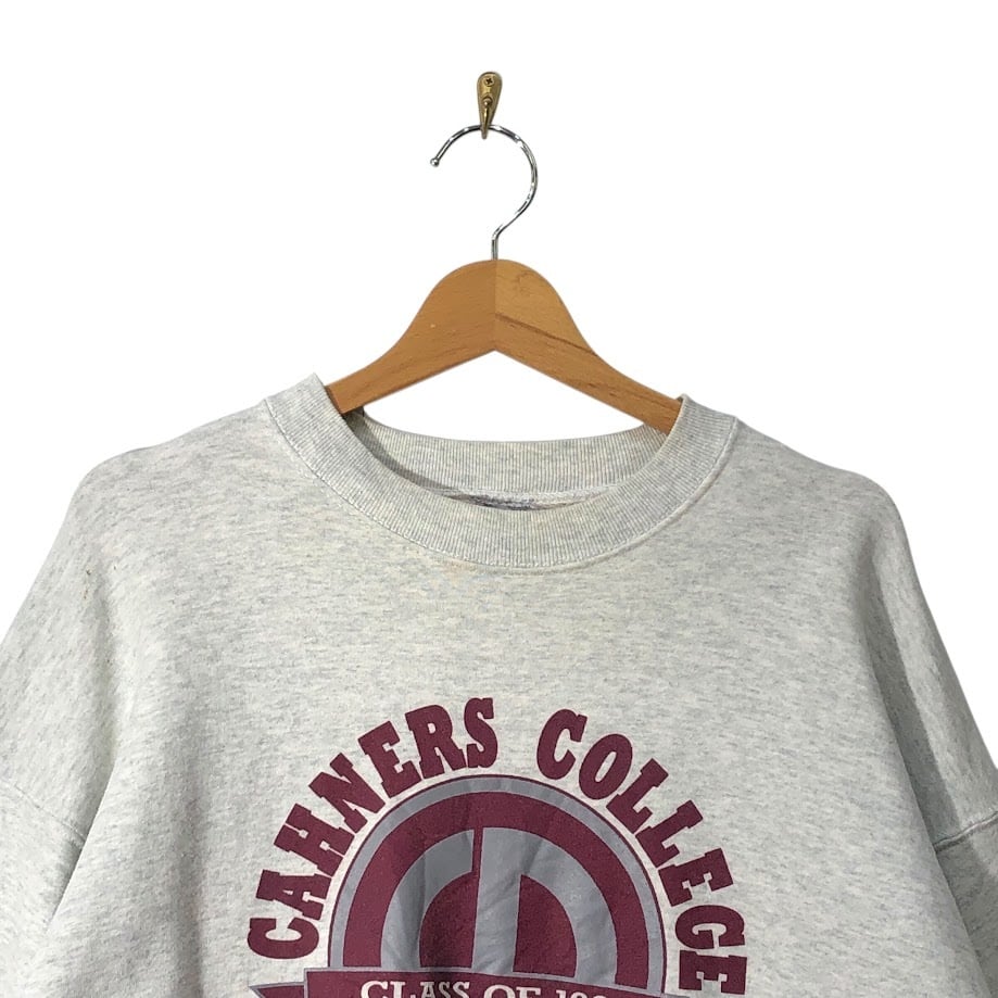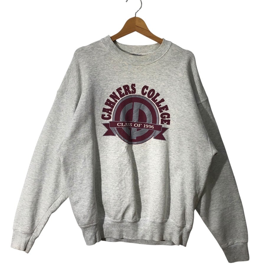 90's vintage 90年代 ヴィンテージ FRUIT OF THE LOOM フルーツオブザルーム HEAVY COTTON スウェットトレーナー フロントプリント オーバーサイズ ビッグシルエット クルーネック USA製 XLサイズ グレーホワイト | OASISCLOTHING 海外古着屋【公式】通販サイト