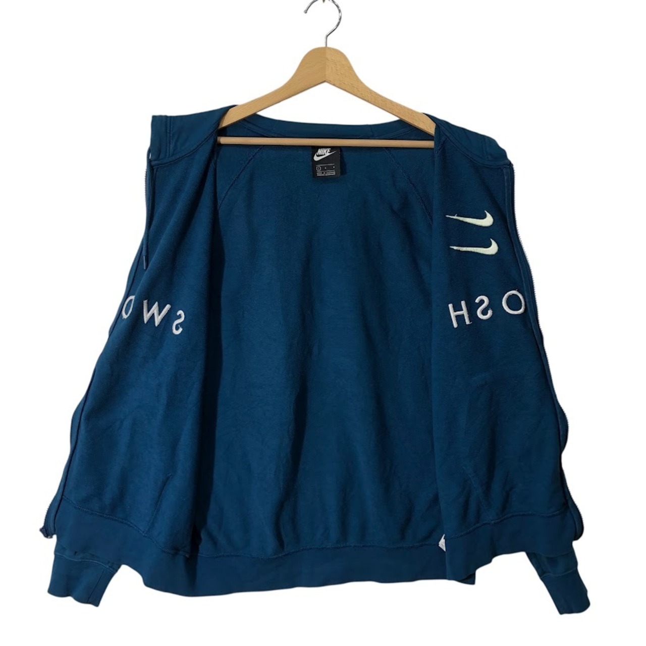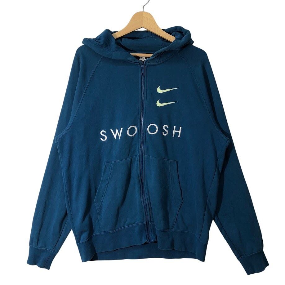 NIKE ナイキ SWOOSH HOODIE フルジップ パーカー フーディー 長袖 バックプリント ワンポイント刺繡 オーバーサイズ ビッグシルエット VIETNAM製 Lサイズ ブルー | OASISCLOTHING 海外古着屋【公式】通販サイト