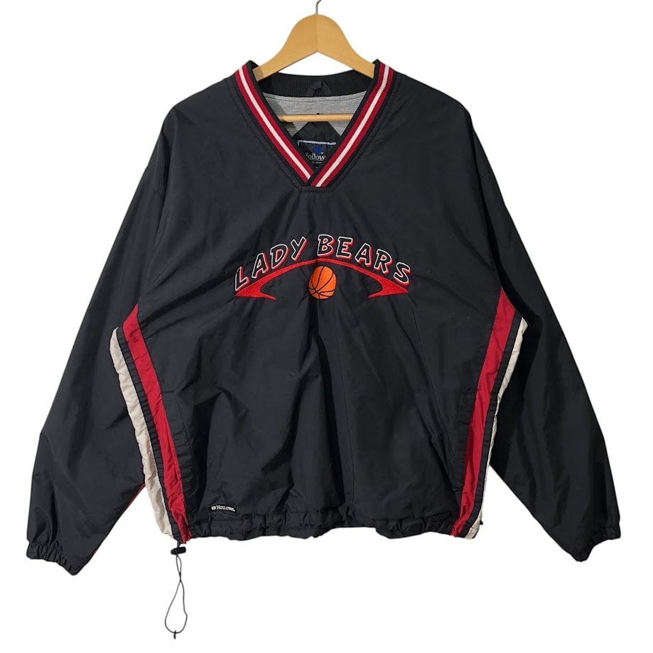 Holloway ホロウェイ LADY BEARS 裾ジップ プルオーバー ライトアウター ナイロンジャケット ドローコード フロント刺繍 ミクロネシア製 Mサイズ ブラック レッド | OASISCLOTHING 海外古着屋【公式】通販サイト