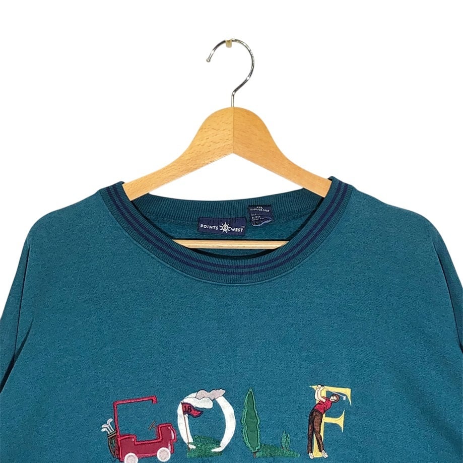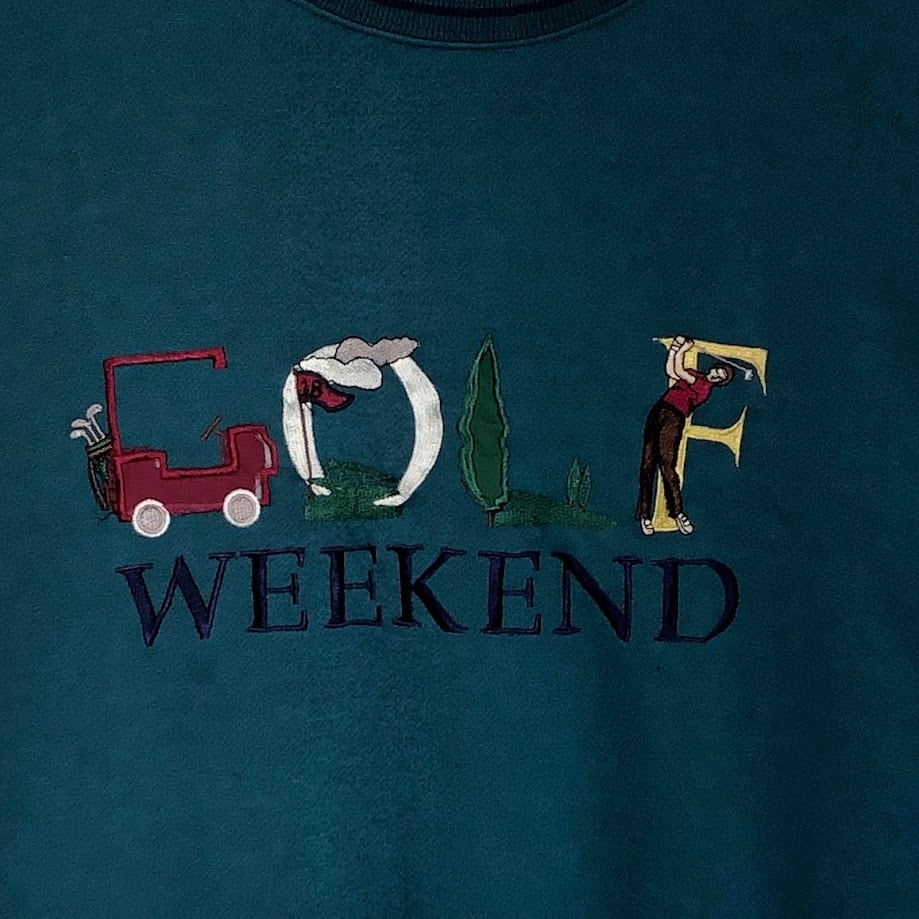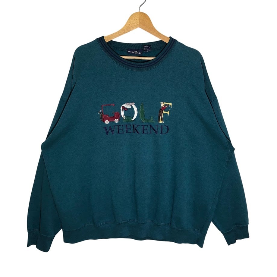 00's vintage 00年代 ヴィンテージ POINT WEST ポイントウェスト GOLF WEEKEND ゴルフ スウェット トレーナー 長袖 フロント刺繍 オーバーサイズ ビッグシルエット クルーネック KOREA製 XXLサイズ グリーン | OASISCLOTHING 海外古着屋【公式】通販サイト