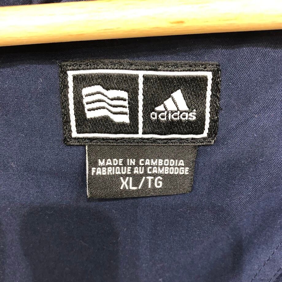 00's vintage 00年代 ヴィンテージ adidas アディダス CLIMAPRIIF WIND クライマプルーフ 襟スリーライン刺繍 アウター ナイロンジャケット バック袖刺繍 CAMBODIA製 XLサイズ ネイビー | OASISCLOTHING 海外古着屋【公式】通販サイト