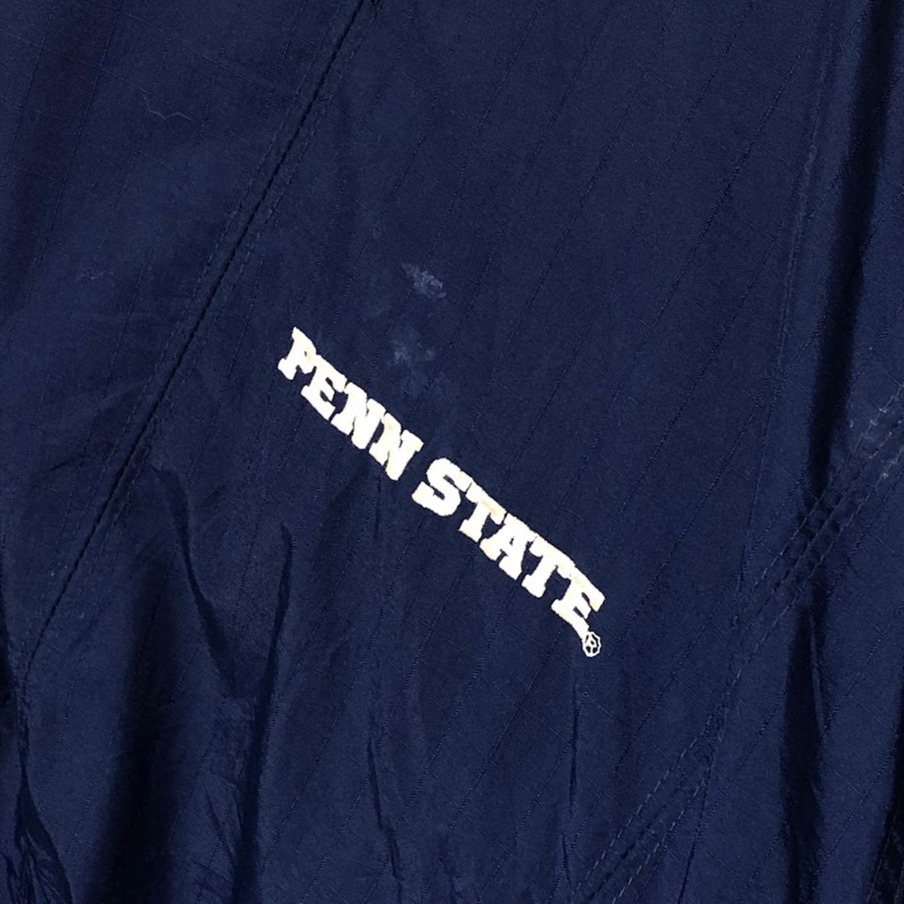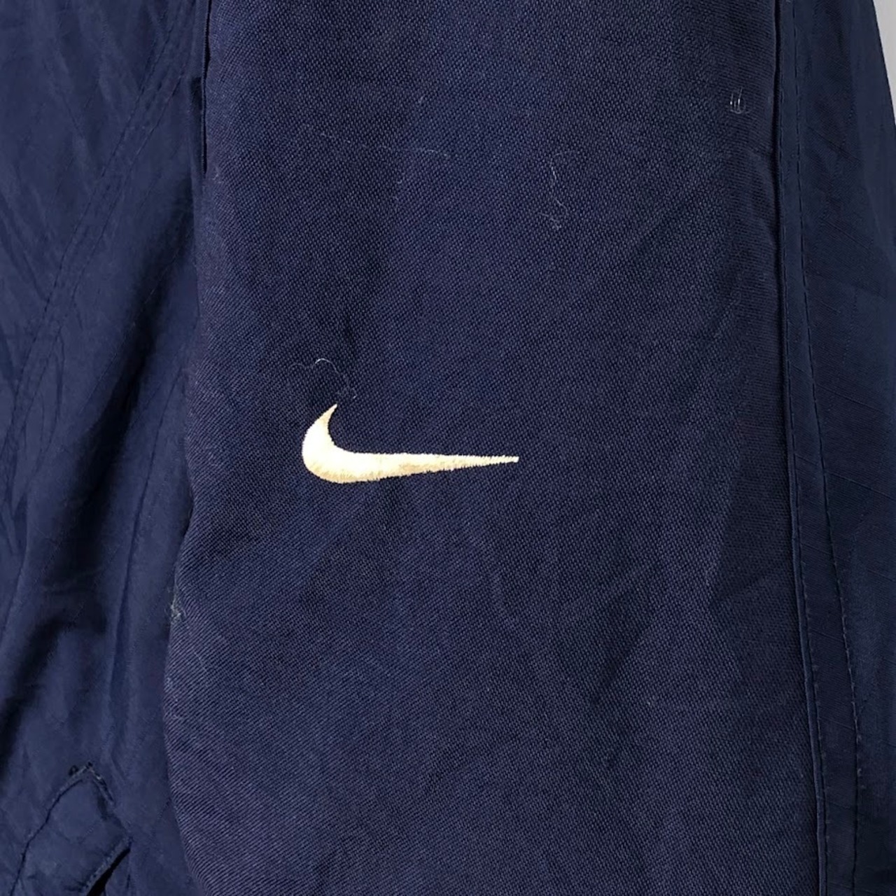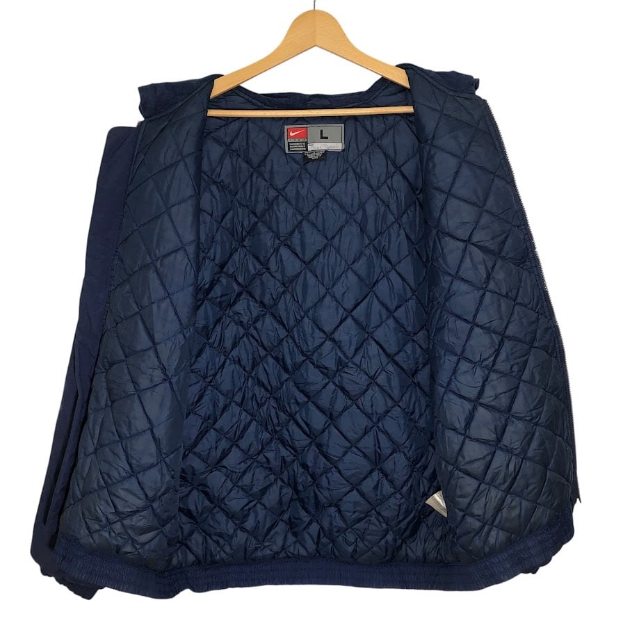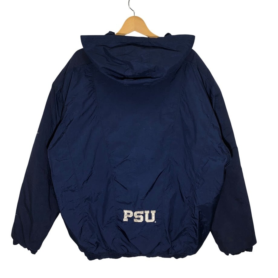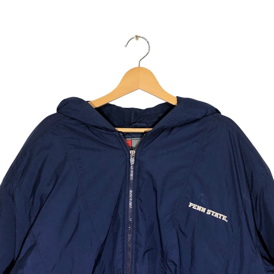 商品名:00's vintage 00年代 ヴィンテージ NIKE ナイキ PSU PENN STATE 中綿 カレッジ刺繍 裏地キルティング フード アウター ナイロンジャケット バック刺繍 ワンポイント刺繡 オーバーサイズ ビッグシルエット KOREA製 Lサイズ ネイビー