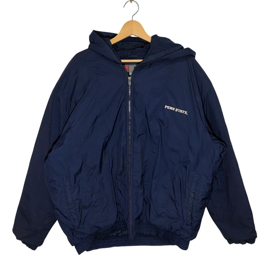 00's vintage 00年代 ヴィンテージ NIKE ナイキ PSU PENN STATE 中綿 カレッジ刺繍 裏地キルティング フード アウター ナイロンジャケット バック刺繍 ワンポイント刺繡 オーバーサイズ ビッグシルエット KOREA製 Lサイズ ネイビー | OASISCLOTHING 海外古着屋【公式】通販サイト