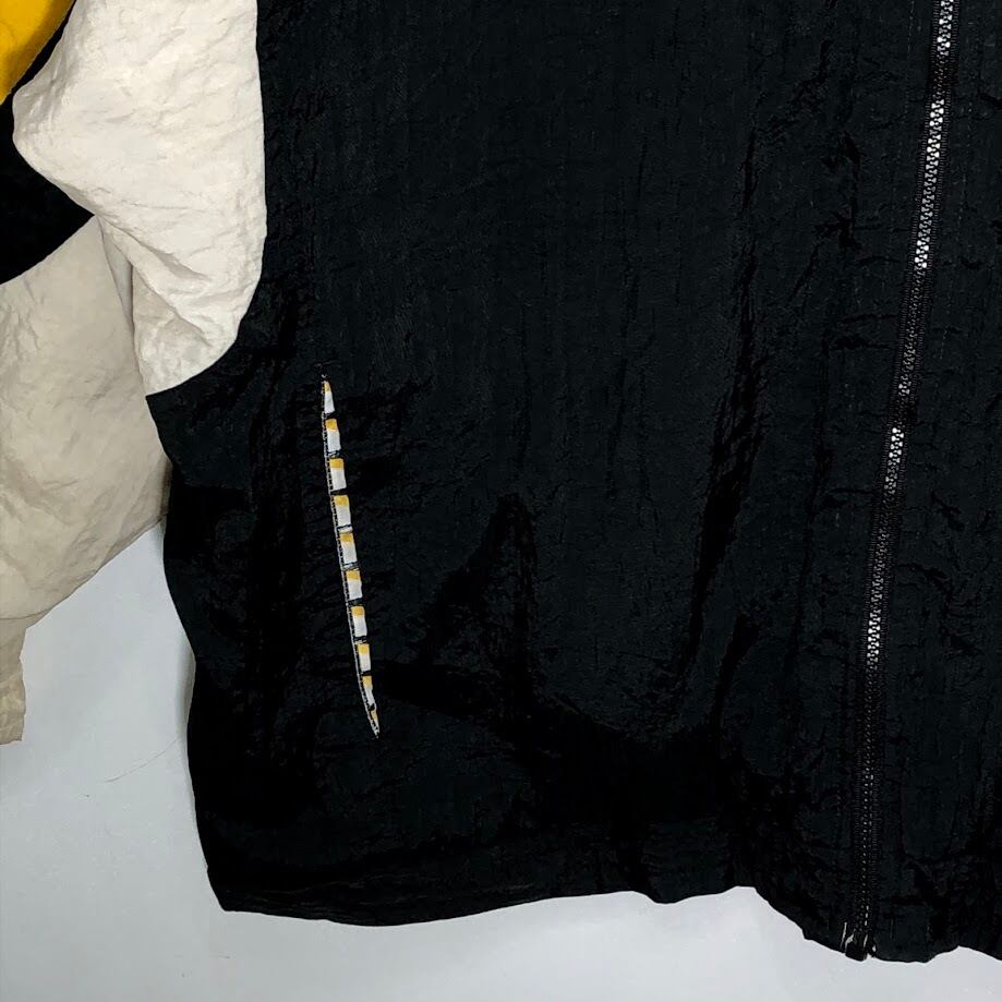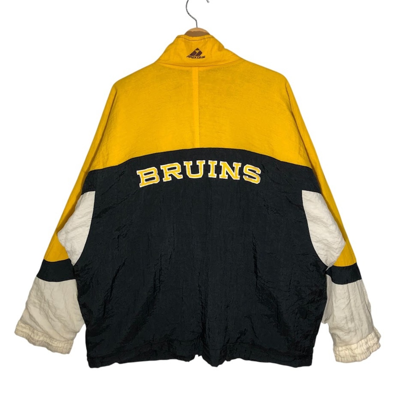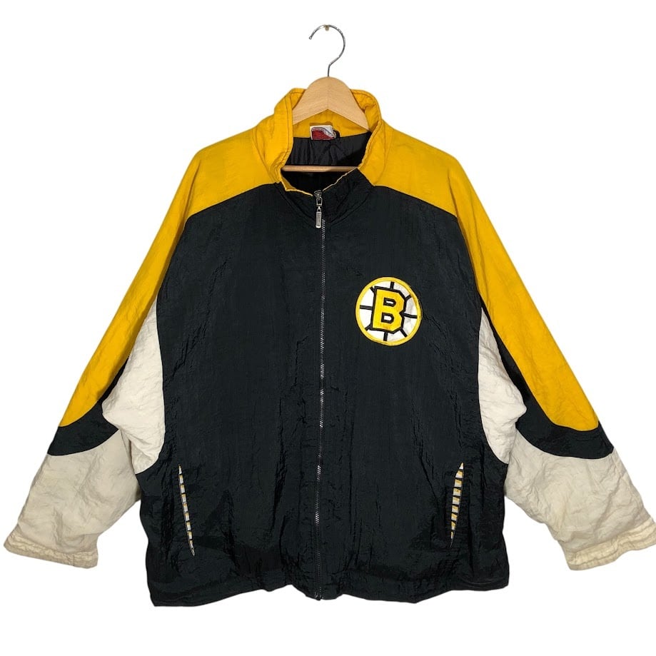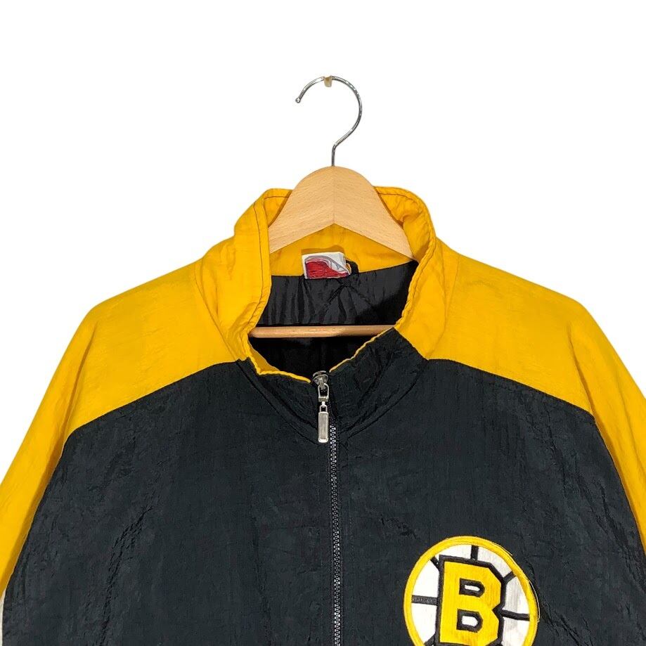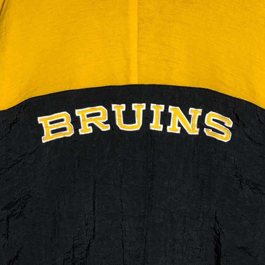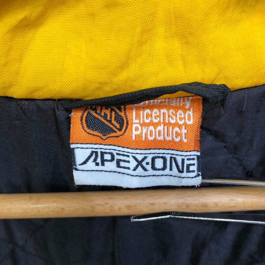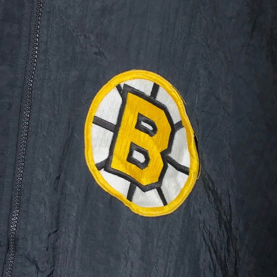 90's vintage 90年代 ヴィンテージ APEX ONE NFL エヌエフエル 裏キルティング ホッケーチーム スポーツ ボストンブルーイング アウター ナイロンジャケット バック刺繍 ワンポイント刺繡 オーバーサイズ ビッグシルエット ブラック | OASISCLOTHING 海外古着屋【公式】通販サイト