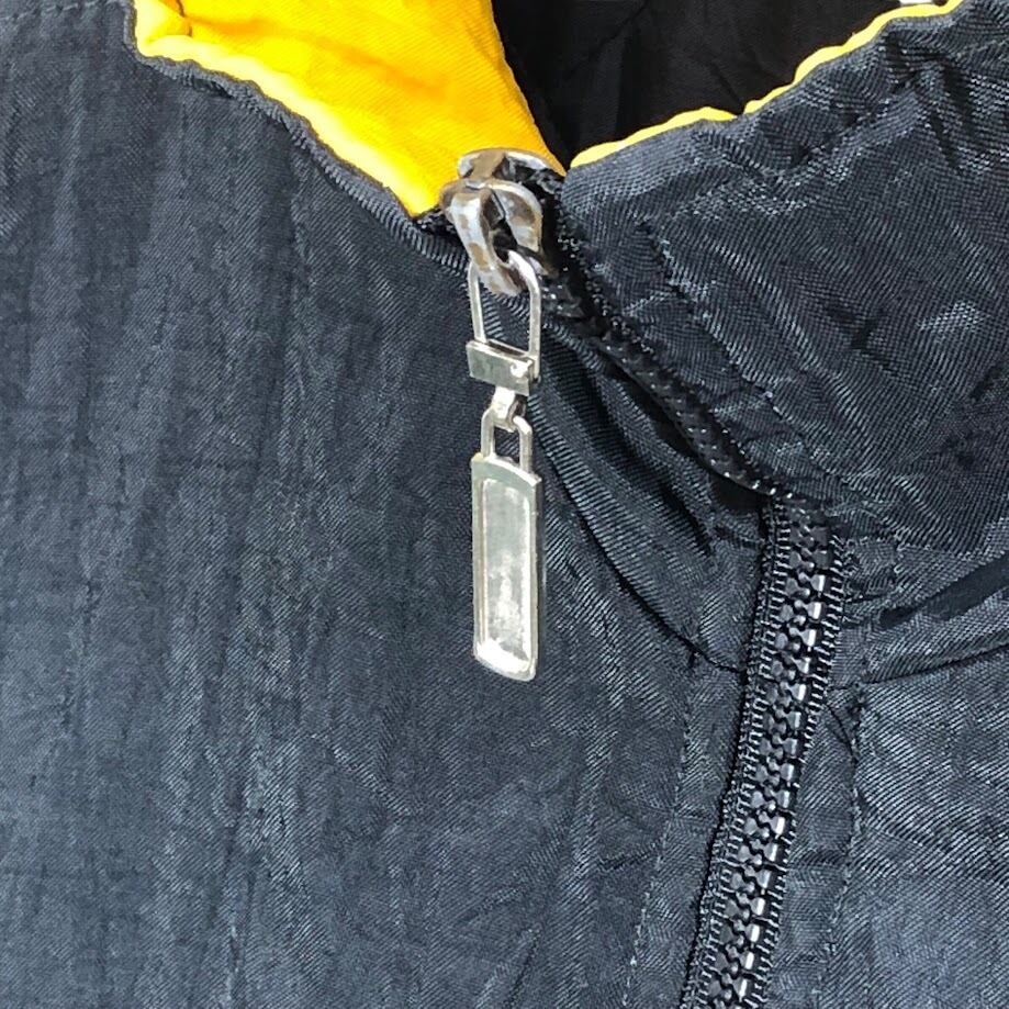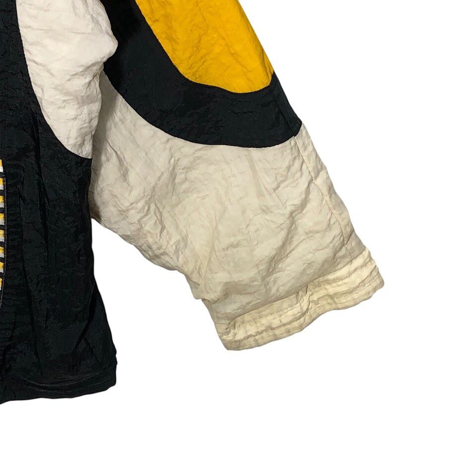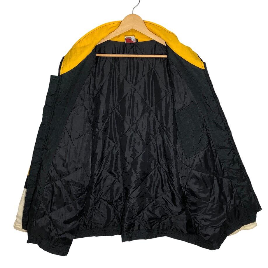 商品名:90's vintage 90年代 ヴィンテージ APEX ONE NFL エヌエフエル 裏キルティング ホッケーチーム スポーツ ボストンブルーイング アウター ナイロンジャケット バック刺繍 ワンポイント刺繡 オーバーサイズ ビッグシルエット ブラック