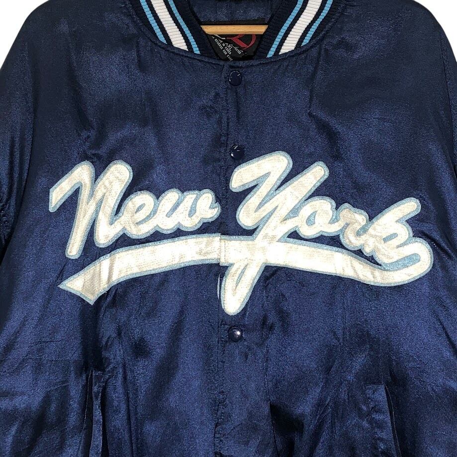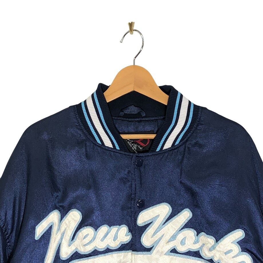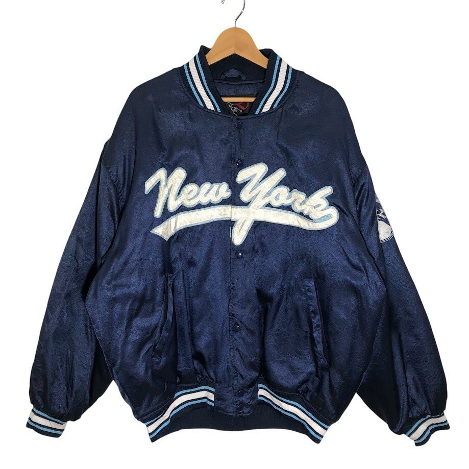 ROOKY サテン スタジャン ジャケット 中綿 スナップボタン NEWYORK ニューヨークヤンキース アウター オーバーサイズ ビッグシルエット KOREA製 XXLサイズ ネイビーブルー | OASISCLOTHING 海外古着屋【公式】通販サイト