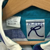 商品名:90's vintage 90年代 ヴィンテージ ROPER ローパー ウエスタンシャツ 総柄 ネイティブ柄 長袖 シャツ ボタンダウン USA製 MEDIUM Mサイズ ホワイト ネイビー ブルー ライトブルー