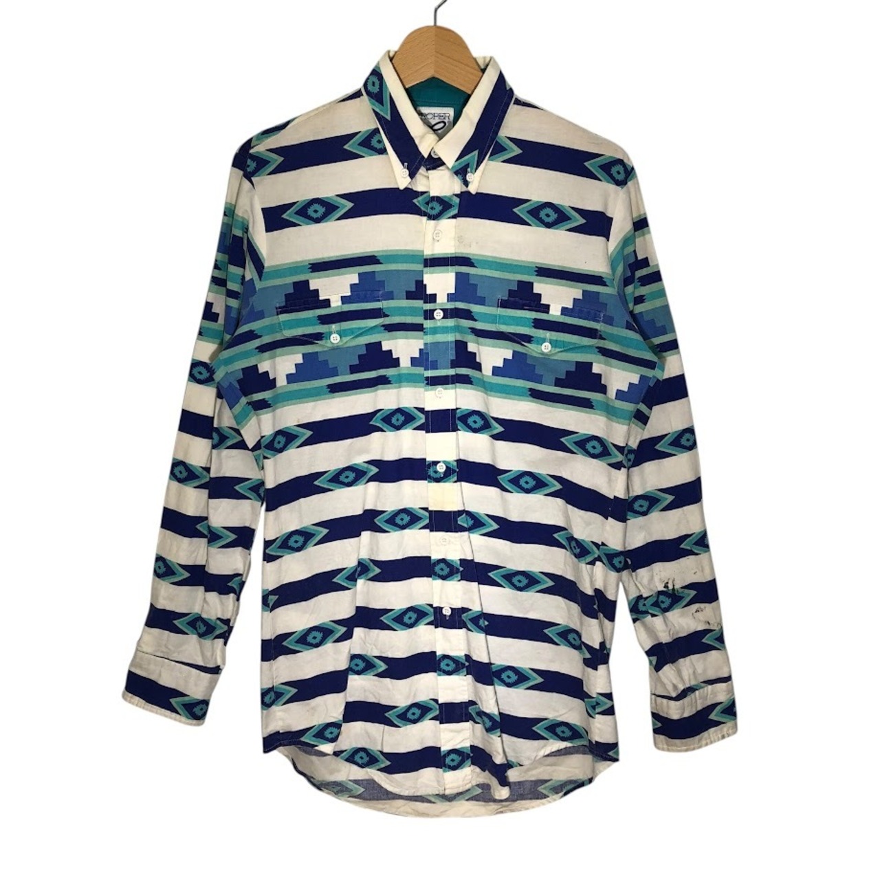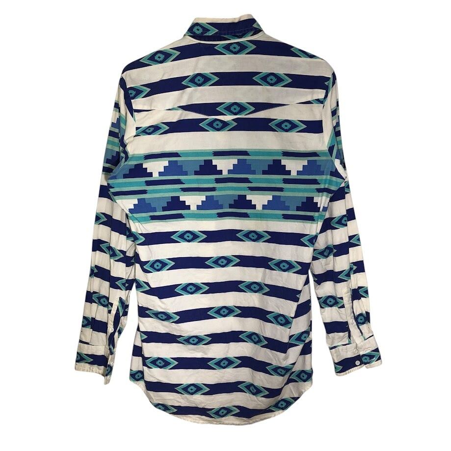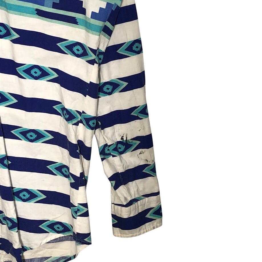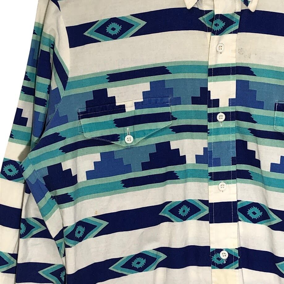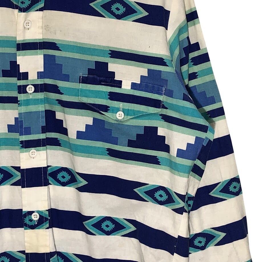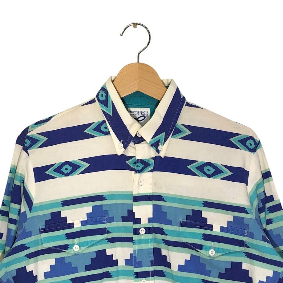 90's vintage 90年代 ヴィンテージ ROPER ローパー ウエスタンシャツ 総柄 ネイティブ柄 長袖 シャツ ボタンダウン USA製 MEDIUM Mサイズ ホワイト ネイビー ブルー ライトブルー | OASISCLOTHING 海外古着屋【公式】通販サイト