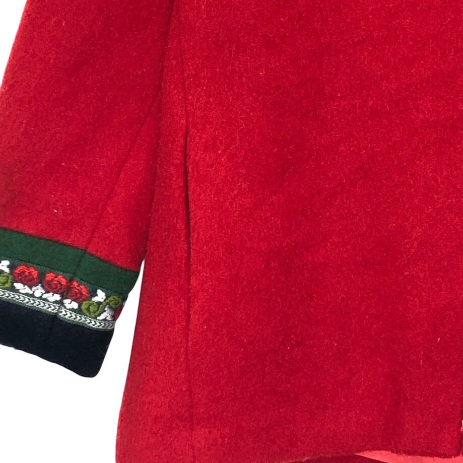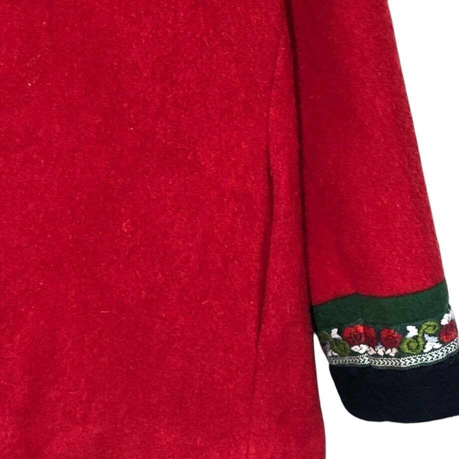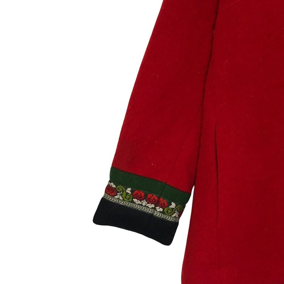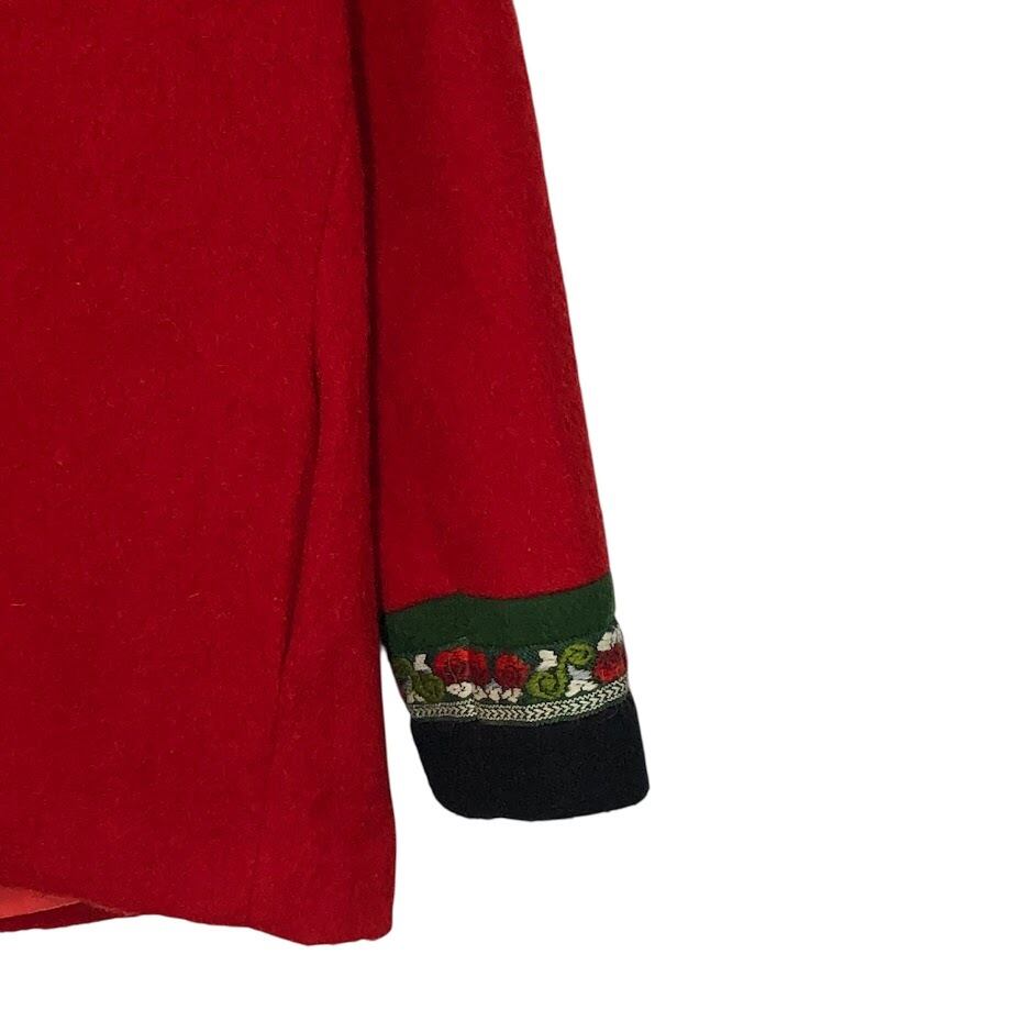 商品名:FJORD FASHIOJN ウールジャケット チロリアン スタンドカラー ノルウェイ製 メタルフック ノルディック アウター ジャケット OPTIジップ NORWAY製 42サイズ レッド ブラック