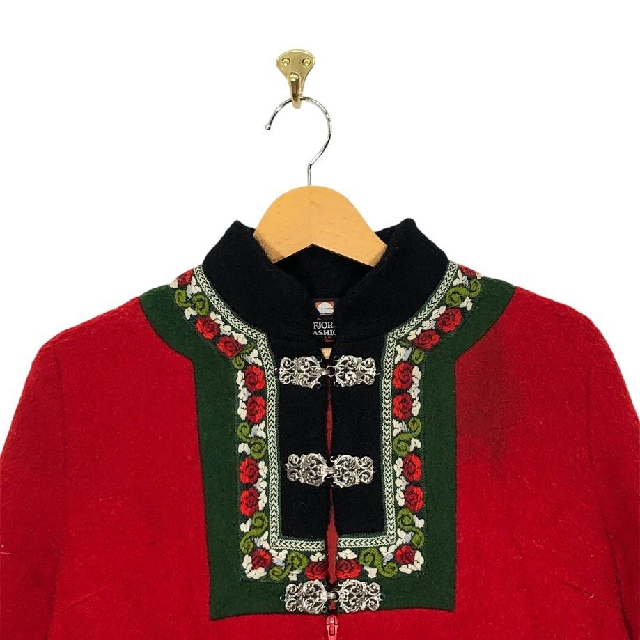 FJORD FASHIOJN ウールジャケット チロリアン スタンドカラー ノルウェイ製 メタルフック ノルディック アウター ジャケット OPTIジップ NORWAY製 42サイズ レッド ブラック | OASISCLOTHING 海外古着屋【公式】通販サイト