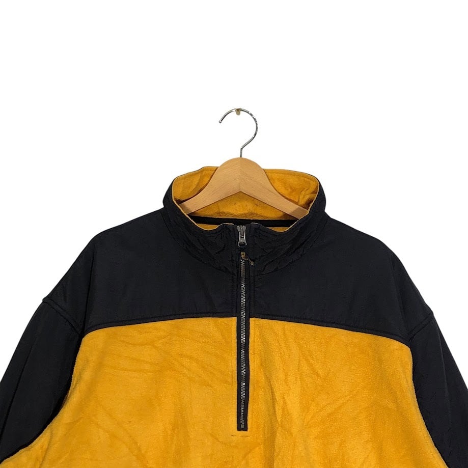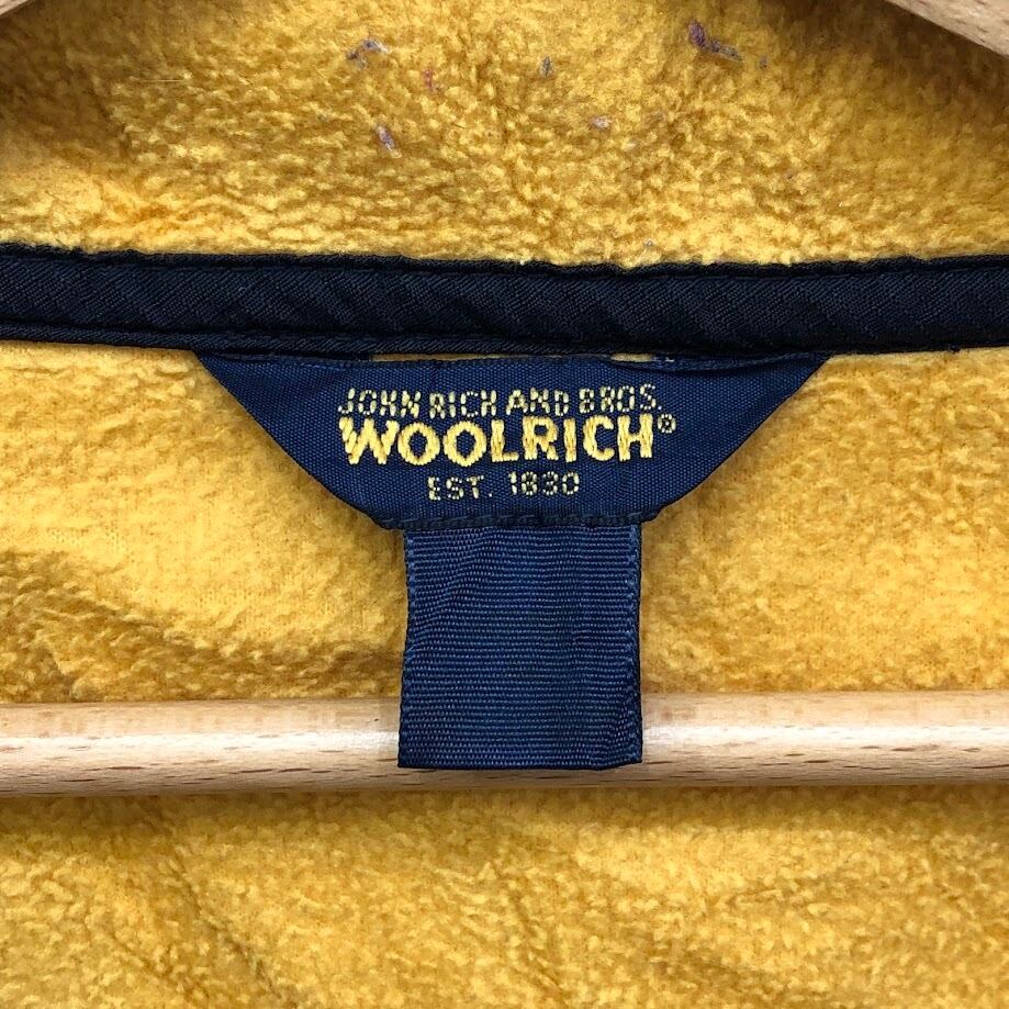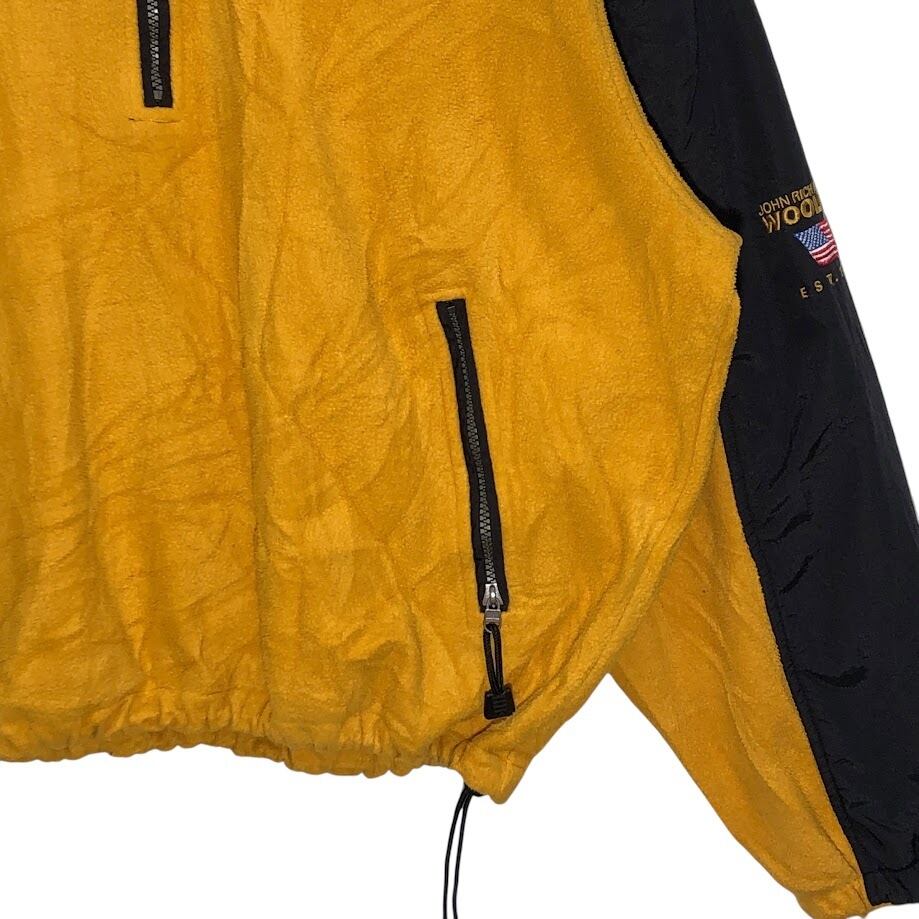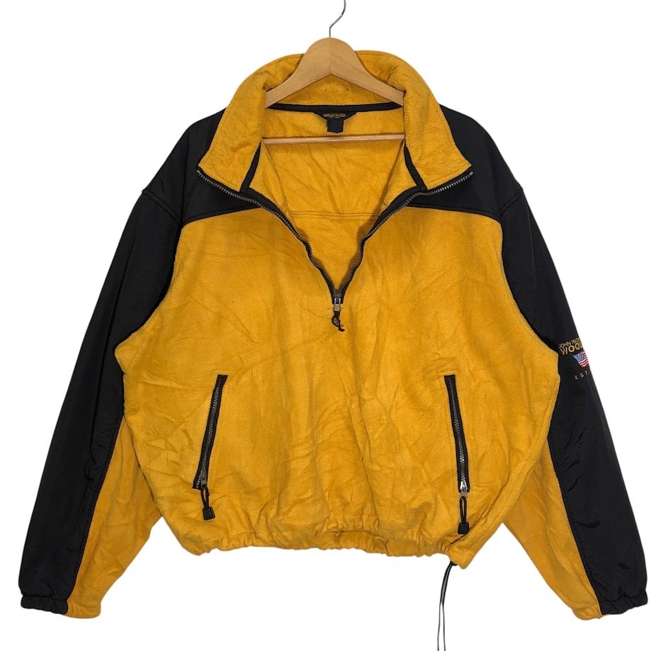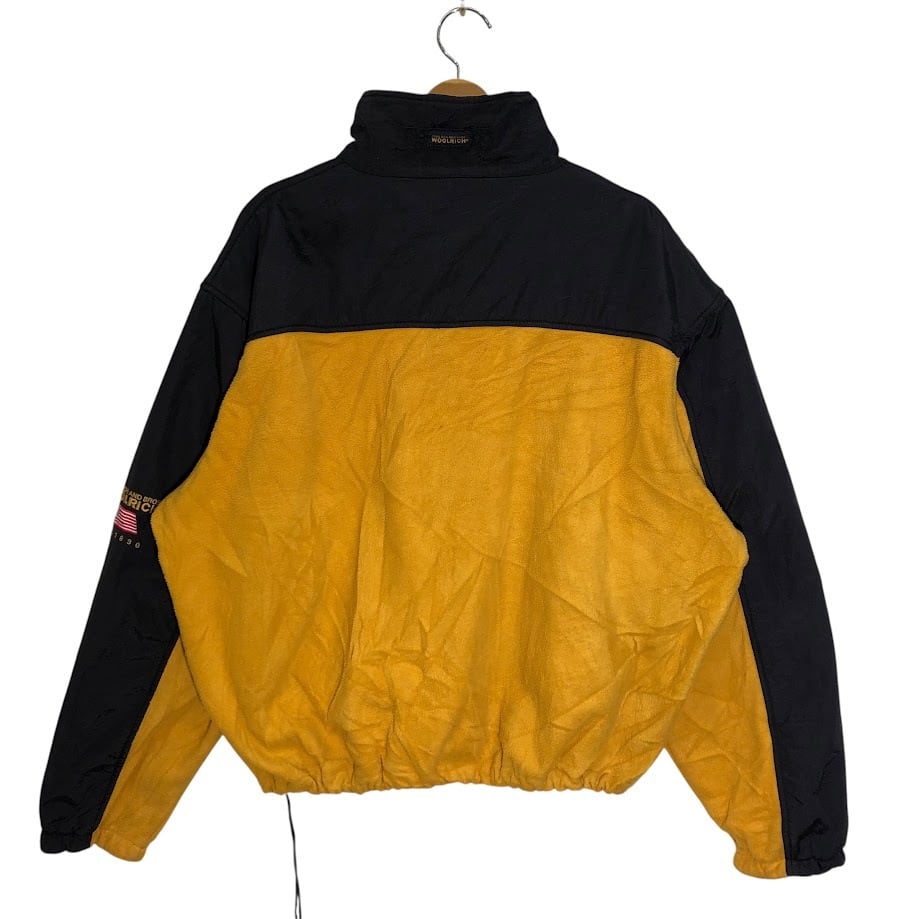 商品名:90's vintage 90年代 ヴィンテージ WOOLRICH ウールリッチ フリースハーフジップ フリースプルオーバージャケット アウター ドローコード 袖刺繡 オーバーサイズ ビッグシルエット ブラック イエロー