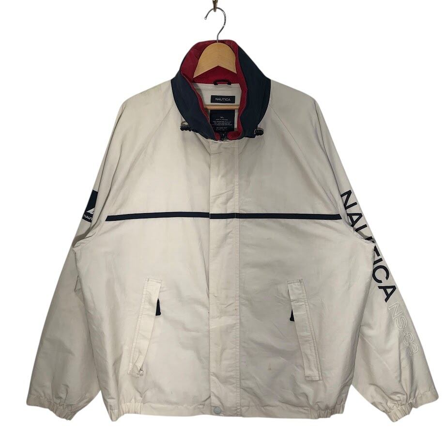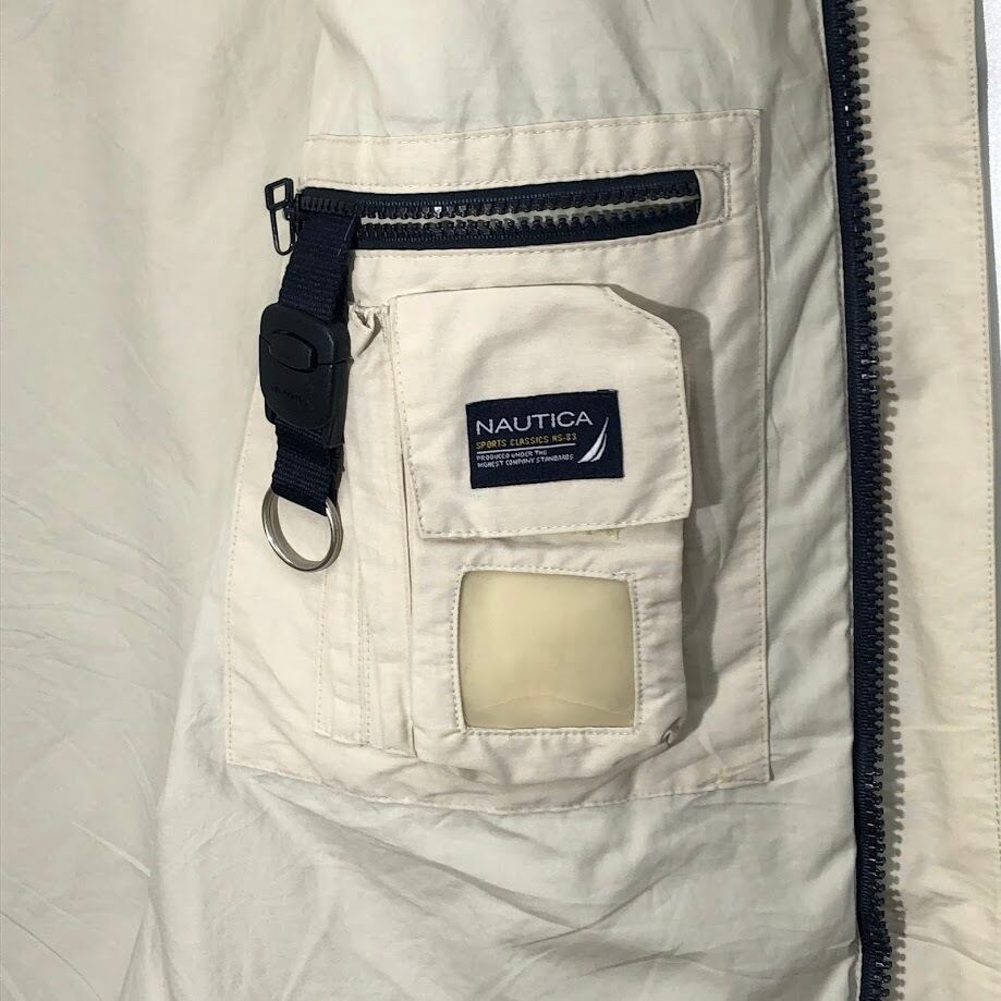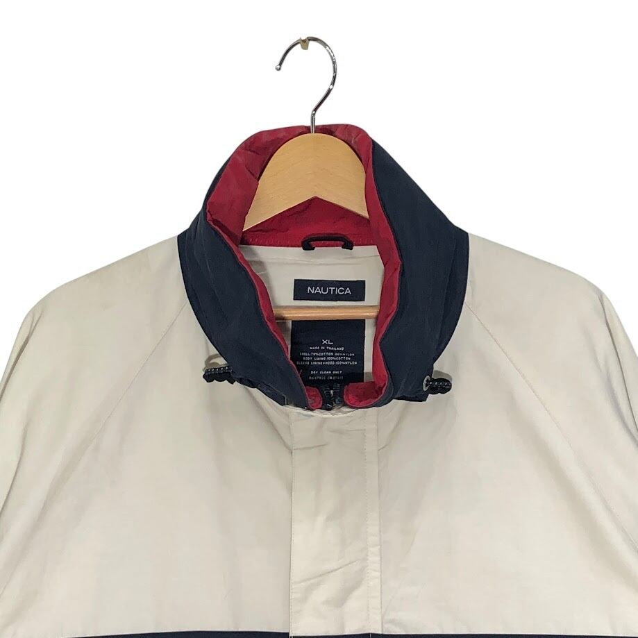 NAUTICA ノーティカ セーリングジャケット フード収納 アウター ブルゾン 袖刺繍 オーバーサイズ ビッグシルエット THAILAND製 XLサイズ オフホワイト | OASISCLOTHING 海外古着屋【公式】通販サイト