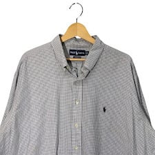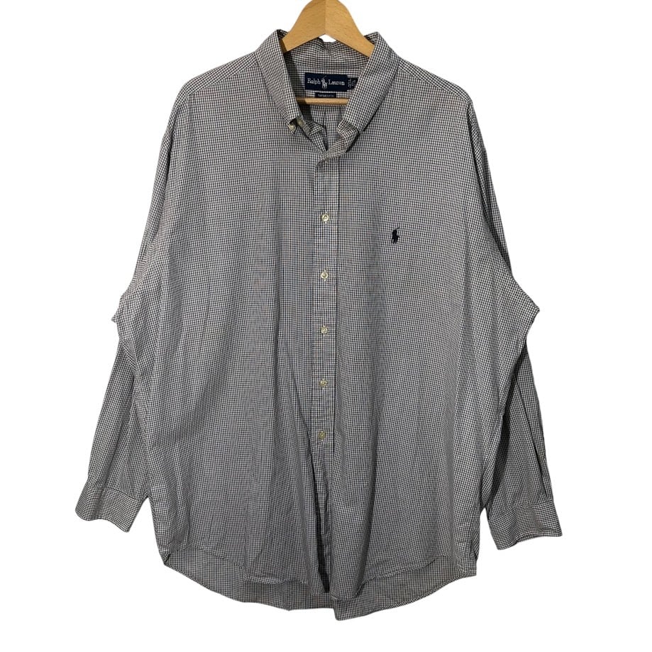 Ralph Lauren ラルフローレン チェック柄 YARMOUTH ポニー刺繡 長袖 シャツ ボタンダウン オーバーサイズ ビッグシルエット HONGKONG製 17 1/2 34/35サイズ ホワイト ブラック | OASISCLOTHING 海外古着屋【公式】通販サイト