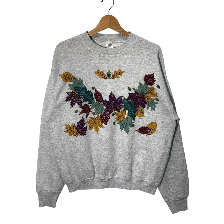 90's vintage 90年代 ヴィンテージ FRUIT OF THE LOOM フルーツオブザルーム もみじ メープル スウェット トレーナー 長袖 フロントプリント クルーネック Mexico製 Lサイズ グレーホワイト ライトグレー | OASISCLOTHING 海外古着屋【公式】通販サイト