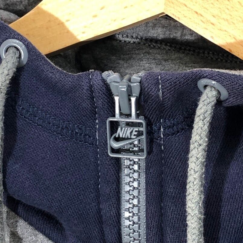 商品名:NIKE ナイキ AIR フルジップ パーカー フーディー 長袖 ワンポイントプリント MALAYSIA製 Mサイズ グレー ネイビー