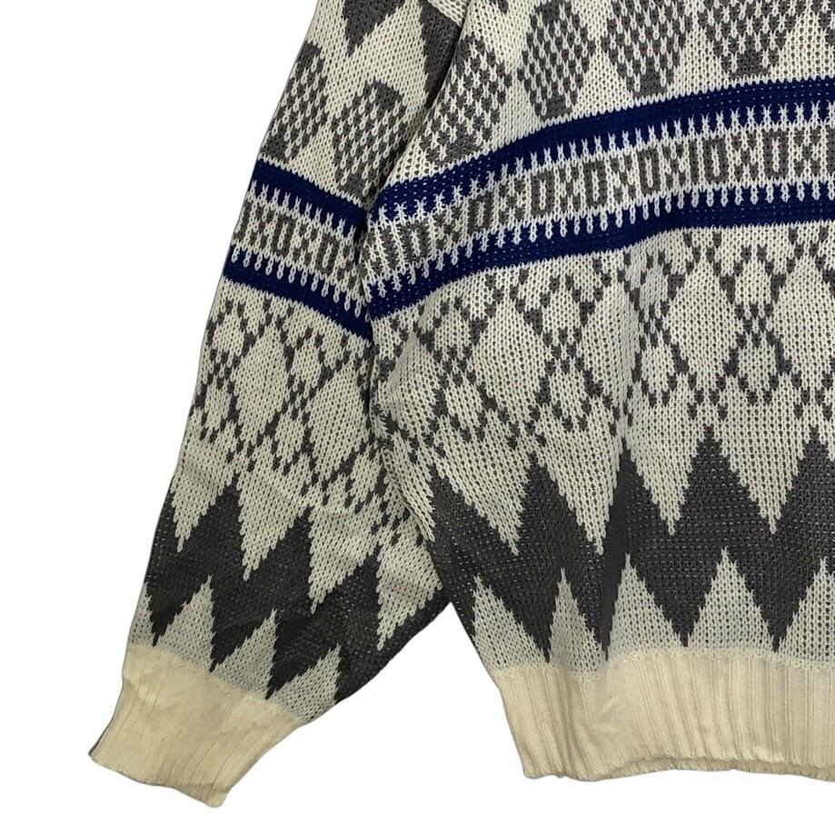 CLUB Europe 90年代/90's ヴィンテージ 幾何学模様 ニット セーター 長袖 オーバーサイズ ビッグシルエット クルーネック KOREA製 Lサイズ アイボリー/グレー | OASISCLOTHING 海外古着屋【公式】通販サイト