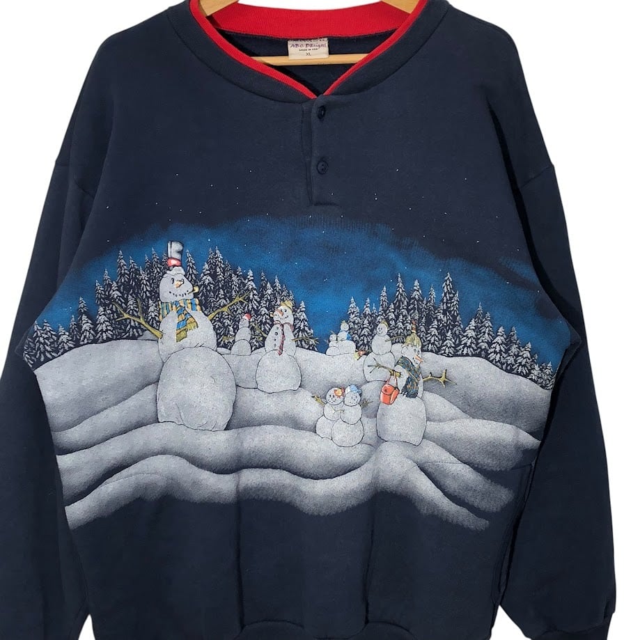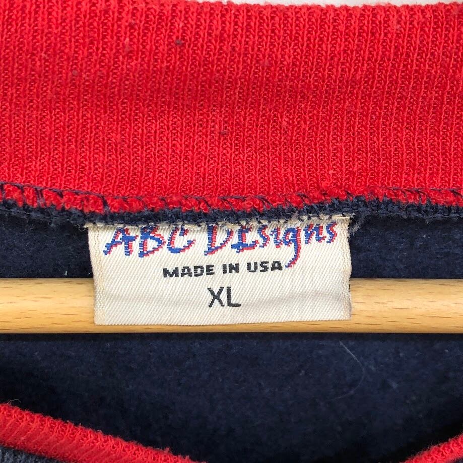 90's vintage 90年代 ヴィンテージ ABC DEsigns クルーネックプリントスウェット フロントバックプリント USA製 XLサイズ ネイビー | OASISCLOTHING 海外古着屋【公式】通販サイト
