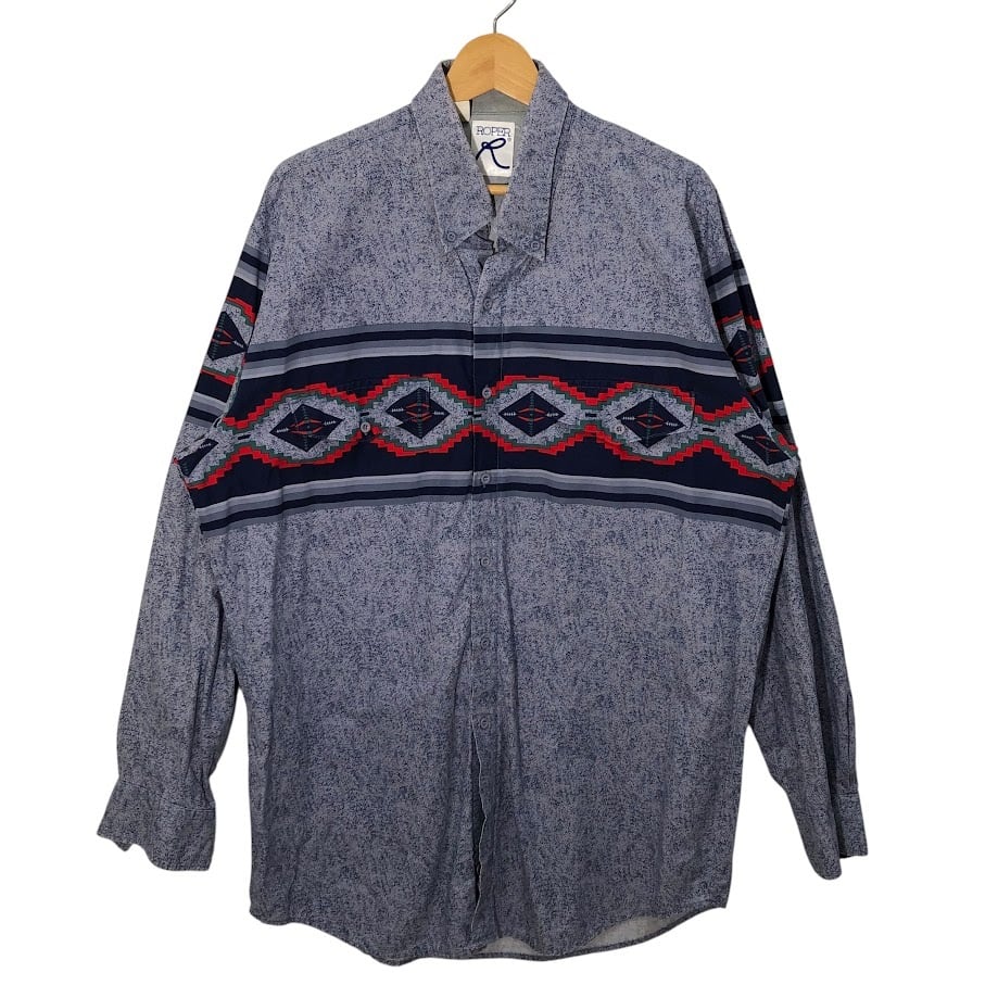 90's vintage 90年代 ヴィンテージ ROPER ローパー ネイティブ柄 長袖 シャツ ボタンダウン XLサイズ ブルー ネイビー | OASISCLOTHING 海外古着屋【公式】通販サイト