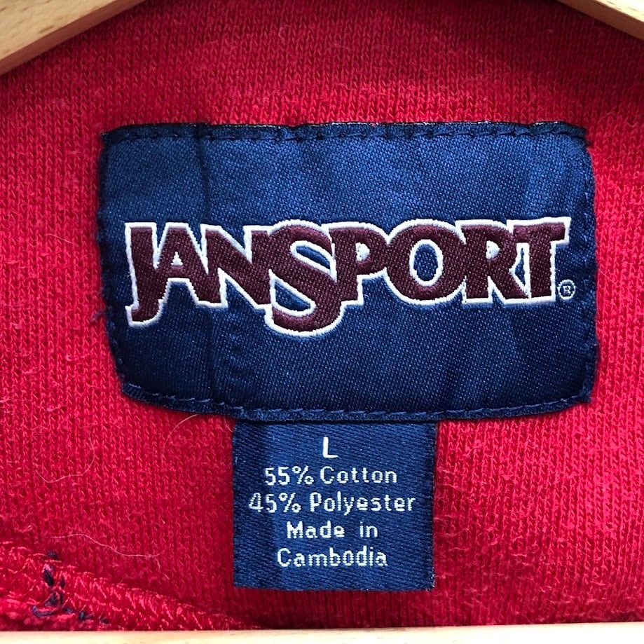 商品名:00's vintage 00年代 ヴィンテージ JANSPORT ジャンスポーツ BOSTON カレッジプリント ハーフジップ スウェット トレーナー プルオーバー フロントプリント オーバーサイズ ビッグシルエット Cambodia製 Lサイズ レッド