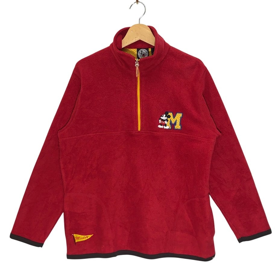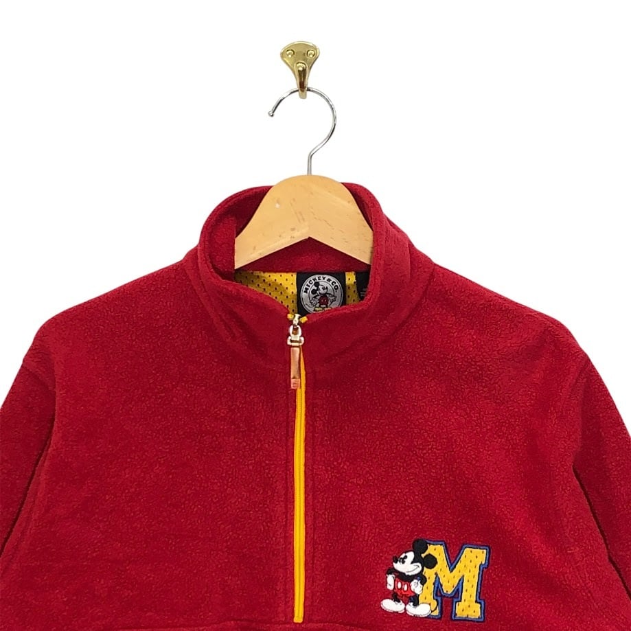 MICKEY&CO Disney ディズニー ミッキー キャラクター フリース プルオーバー ミッキーマウス ハーフジップ 長袖 ワンポイント刺繡 Bangladesh製 Mサイズ レッド | OASISCLOTHING 海外古着屋【公式】通販サイト
