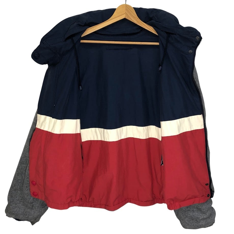 商品名:90's vintage 90年代 ヴィンテージ nautica ノーティカ リバーシブルセーリングジャケット フリース アウター ジャケット ブルゾン 袖刺繡 オーバーサイズ Philippines製 XXLサイズ ネイビー レッド グレー