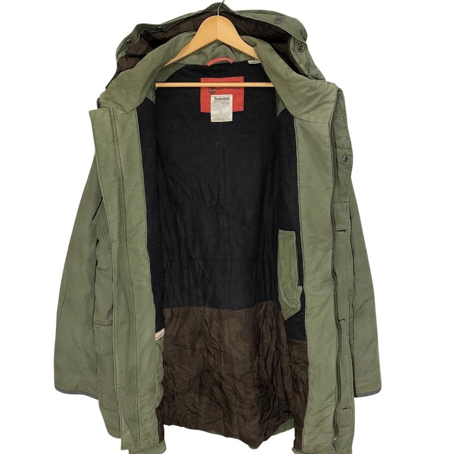 商品名:Timberland/ティンバーランド ミリタリー 中綿ジャケット フード アウター ジャケット 袖刺繡 オーバーサイズ ビッグシルエット Bangladesh製 XLサイズ カーキ