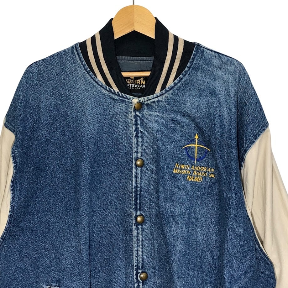 AUBURN SPORTS WEAR 80年代/80’s ヴィンテージ デニムスタジャン 切替 USA製 アウター フロント刺繡 オーバーサイズ ビッグシルエット ブルー | OASISCLOTHING 海外古着屋【公式】通販サイト