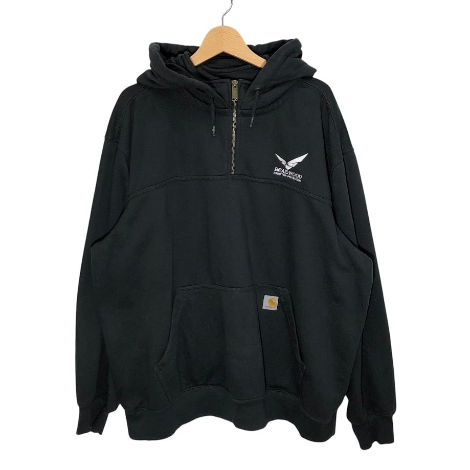 商品名:carhartt/カーハート LOUSEFIT RAINDEFENDER 企業ロゴ刺繡 ハーフジップ アノラック パーカー フーディー プルオーバー オーバーサイズ ビッグシルエット VIETNAM製 2XLサイズ ブラック