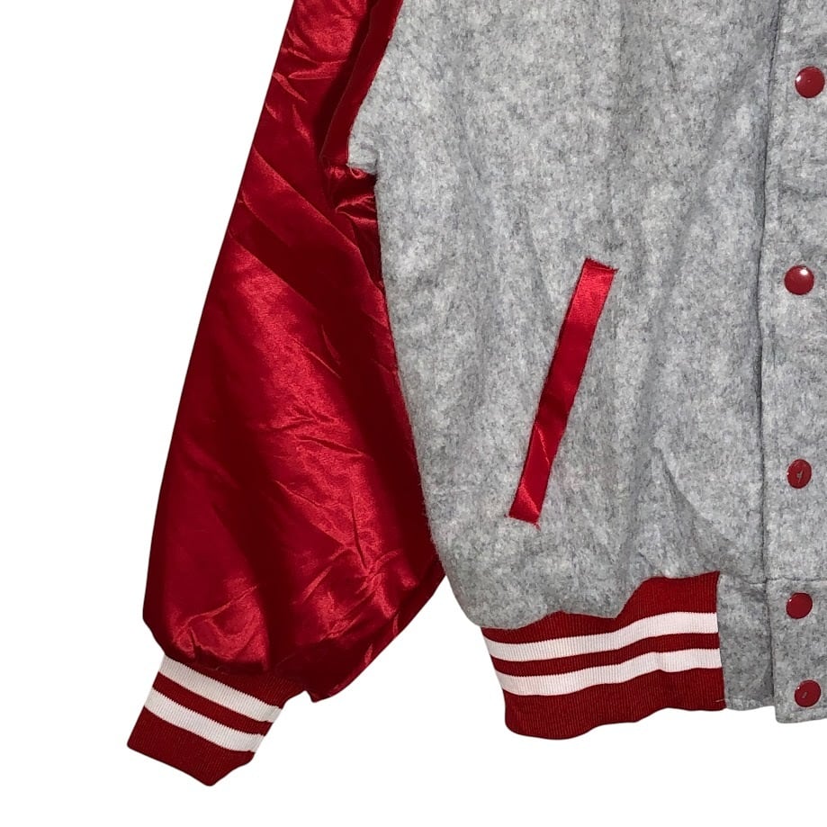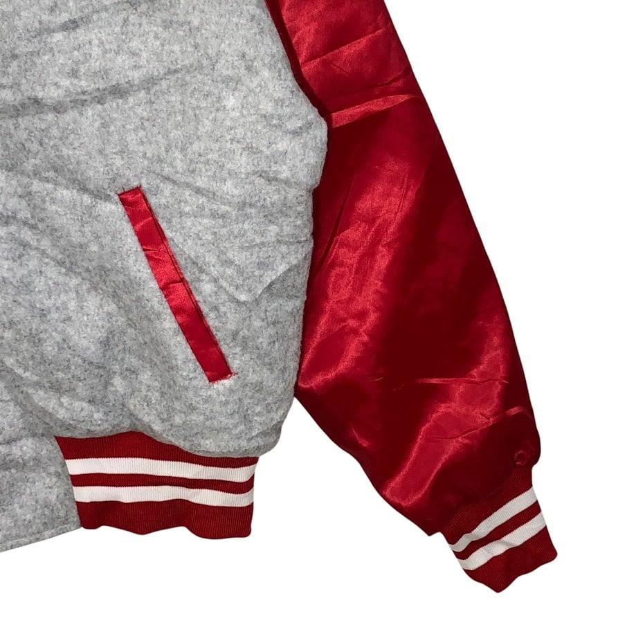 SPORTS MASTER 90年代/90's ヴィンテージ USA製 スタジャン フリースナイロン切替 アウター ジャケット ブルゾン バックプリント Mサイズ グレー/レッド | OASISCLOTHING 海外古着屋【公式】通販サイト