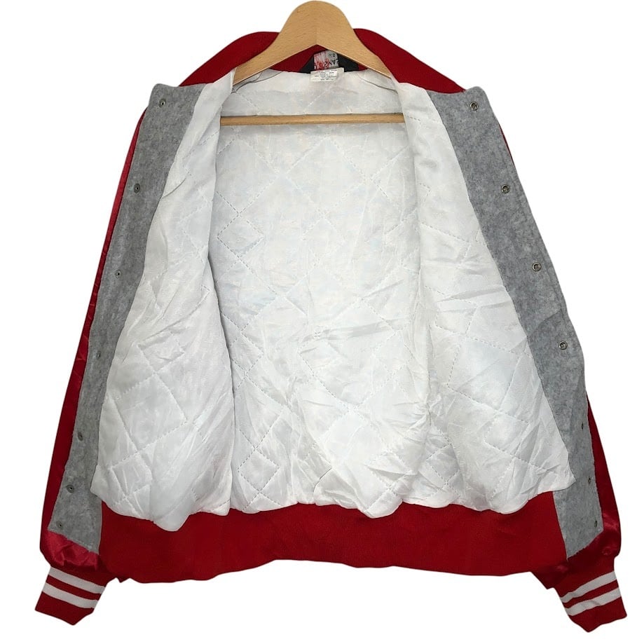 商品名:SPORTS MASTER 90年代/90's ヴィンテージ USA製 スタジャン フリースナイロン切替 アウター ジャケット ブルゾン バックプリント Mサイズ グレー/レッド