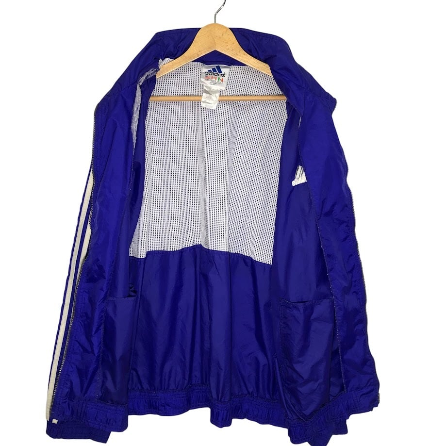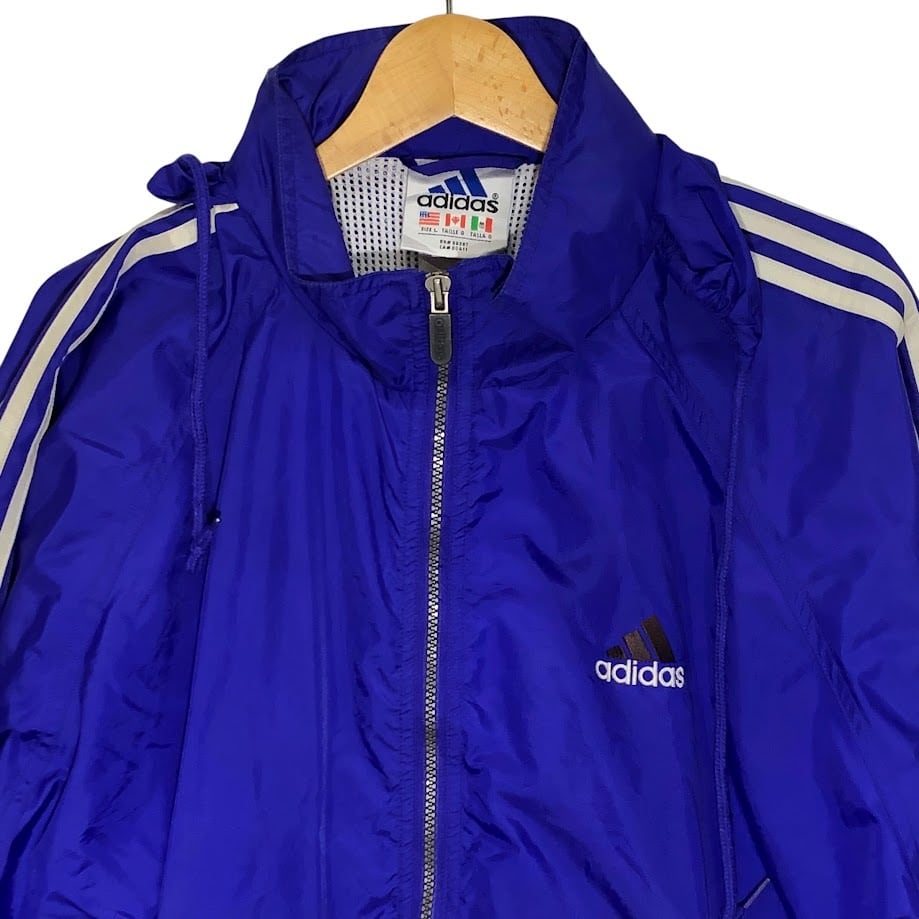 adidas/アディダス 90年代/90's ヴィンテージ スリーライン パフォーマンスロゴ フード収納 アウター ナイロンジャケット ワンポイント刺繡 MACAU製 Lサイズ ブルー | OASISCLOTHING 海外古着屋【公式】通販サイト