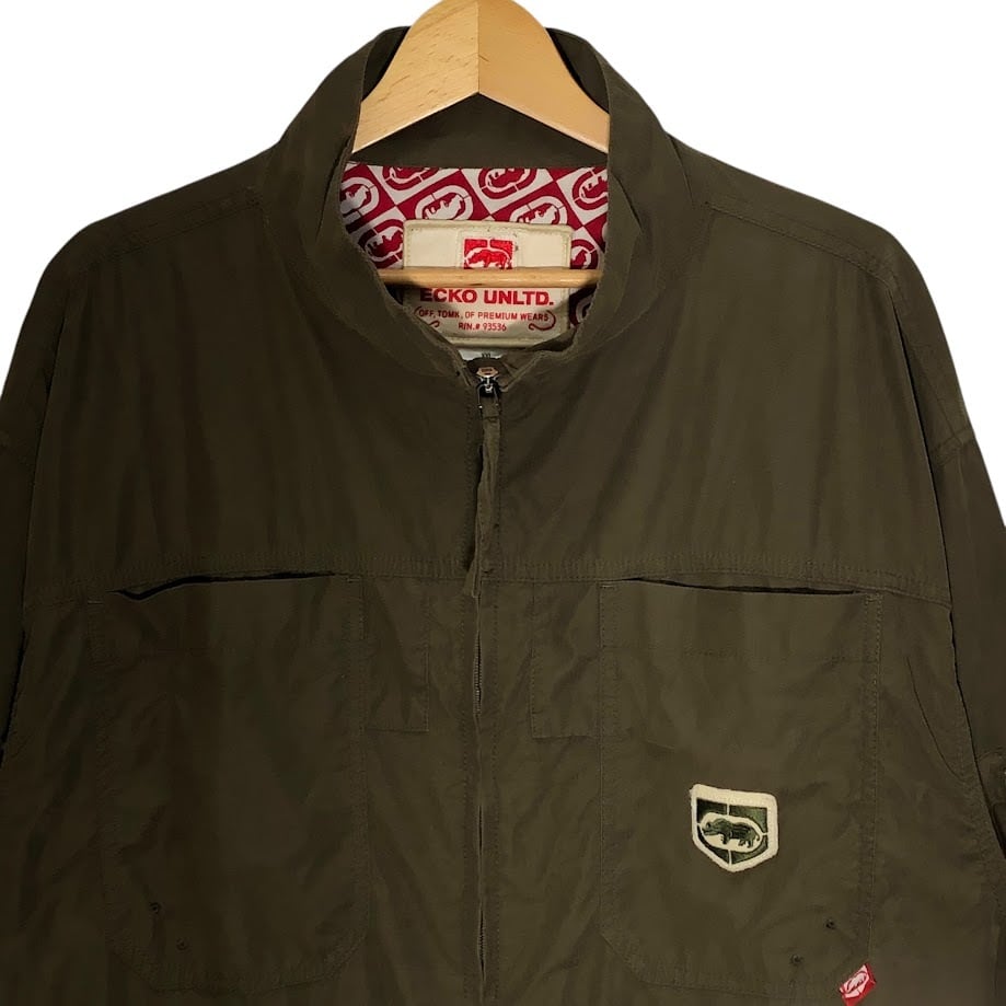 ECKO UNLTD. エコーアンリミテッド カーグルジャケット フルジップ アウター 長袖 ワンポイント刺繡 オーバーサイズ ビッグシルエット PAKISTAN製 XXLサイズ カーキ | OASISCLOTHING 海外古着屋【公式】通販サイト