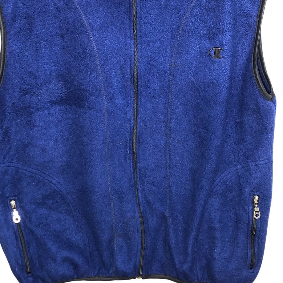 商品名:Champion/チャンピオン 00年代ヴィンテージ/00’s フリースベスト ワンポイント刺繡 ブルー