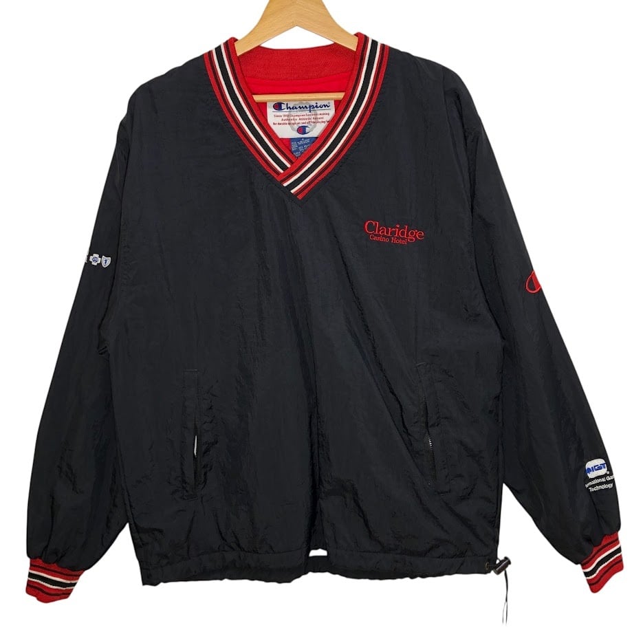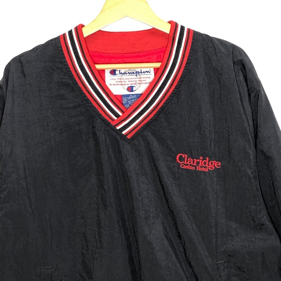 Champion/チャンピオン 90-00年代ヴィンテージ/00’s 企業刺繍 ナイロンプルオーバーシャツ ナイロン ドローコード 企業ロゴ刺繡 Vネック SRILANKA製 Sサイズ ブラック | OASISCLOTHING 海外古着屋【公式】通販サイト