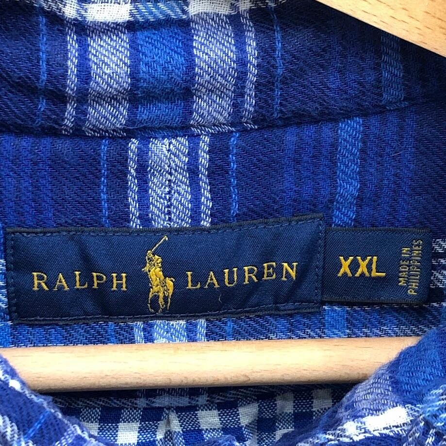 商品名:RALPH LAUREN ラルフローレン チェックシャツ 長袖シャツ ボタンダウン ワンポイント刺繡 ポニー刺繡 オーバーサイズ ビッグシルエット Philippines製 XXLサイズ ブルー