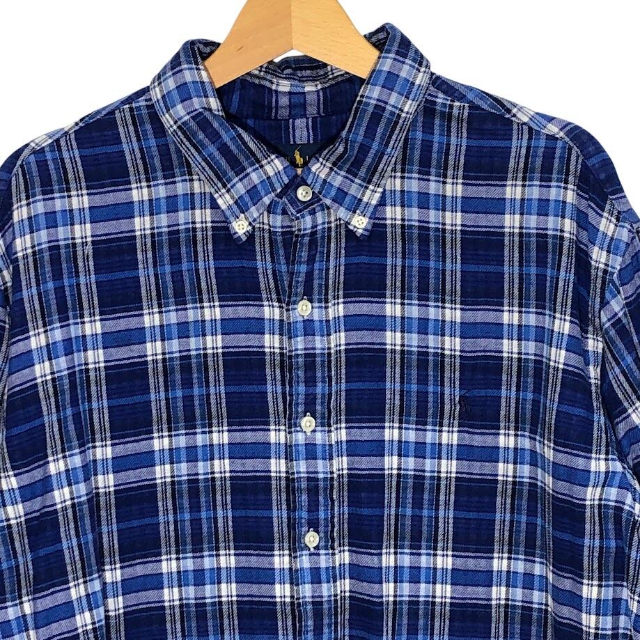 RALPH LAUREN ラルフローレン チェックシャツ 長袖シャツ ボタンダウン ワンポイント刺繡 ポニー刺繡 オーバーサイズ ビッグシルエット Philippines製 XXLサイズ ブルー | OASISCLOTHING 海外古着屋【公式】通販サイト