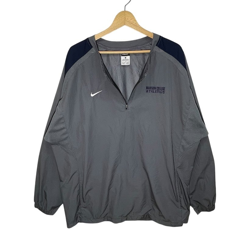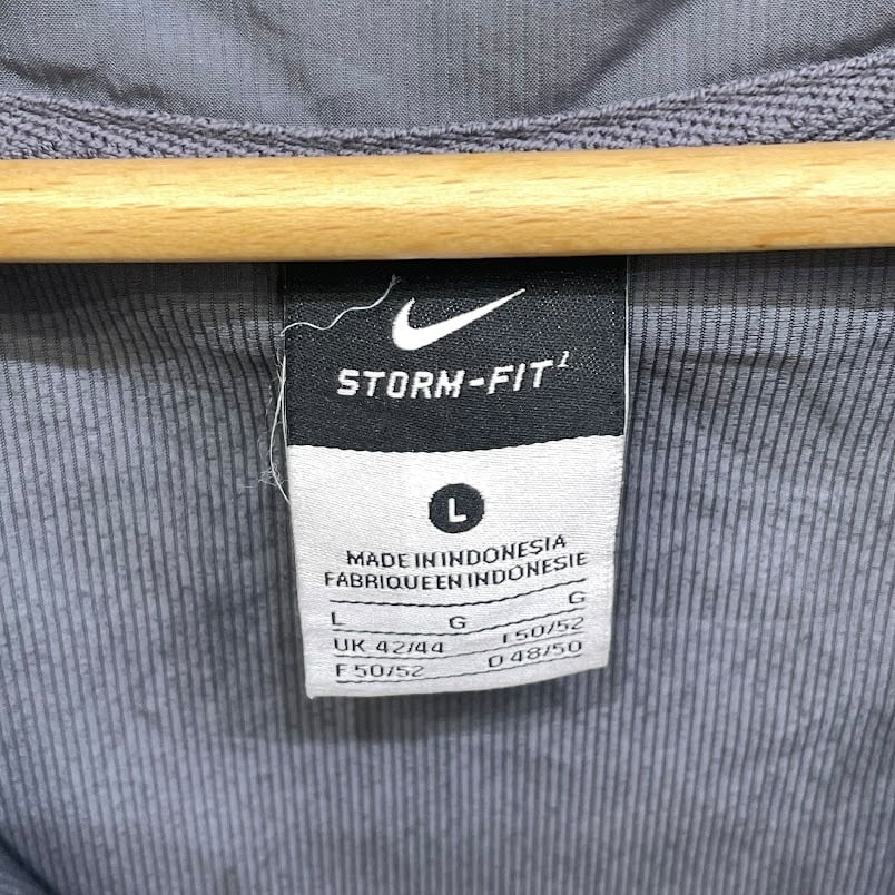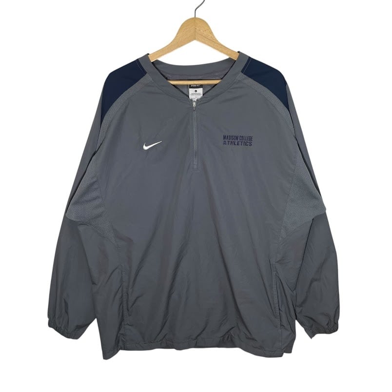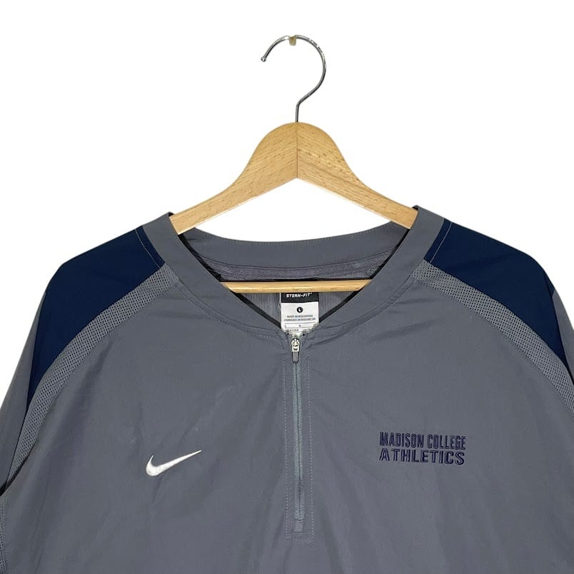 NIKE ナイキ STORM-FIT MADISON COLLEGE ATHLETIC スポーツ カレッジ刺繍 ハーフジップ ナイロン 長袖 ドローコード ワンポイント刺繡 INDONESIA製 Lサイズ グレー | OASISCLOTHING 海外古着屋【公式】通販サイト