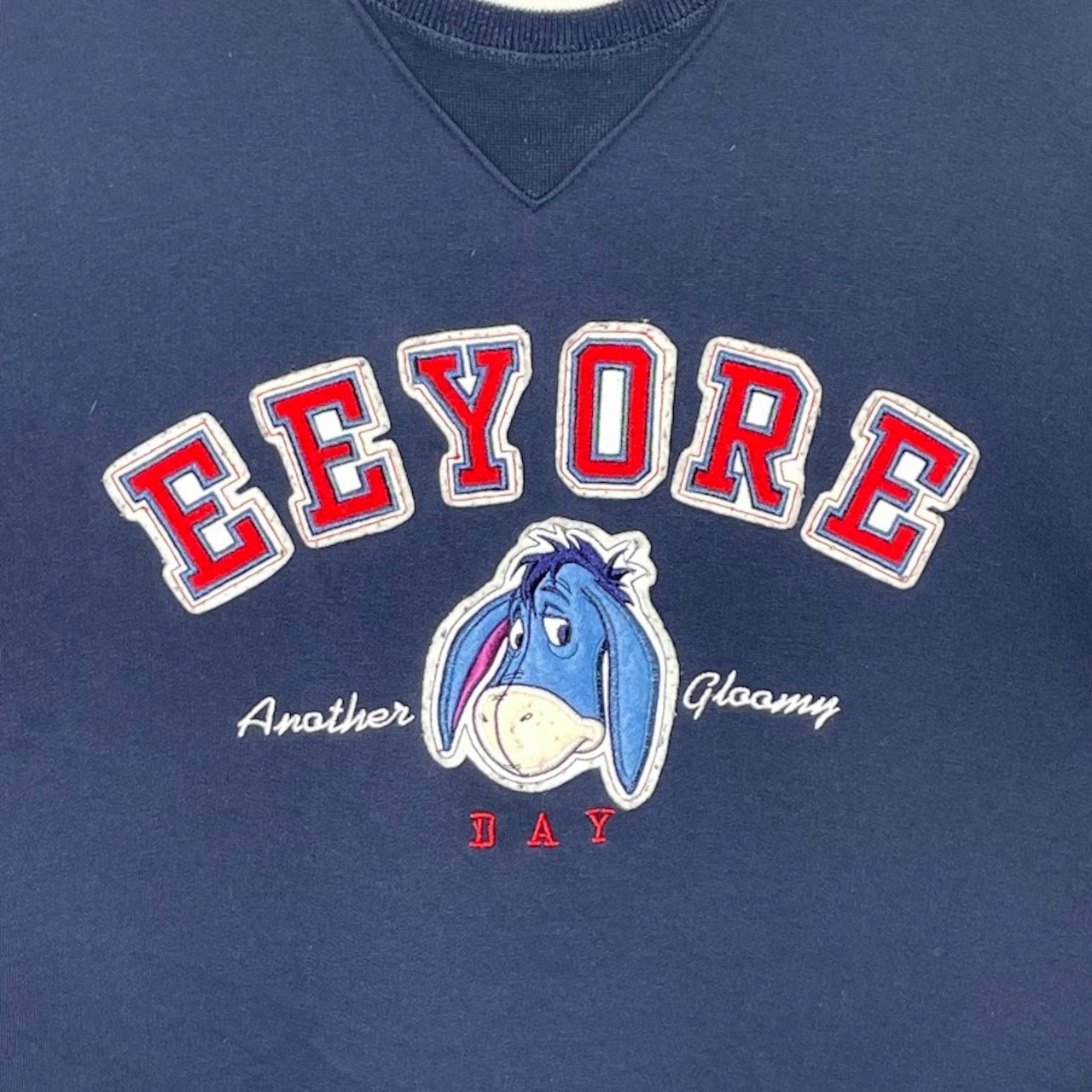 The Disney Store ディズニーストア キャラクター くまのプーさん EEYORE イーヨー スウェット トレーナー 長袖 フロント刺繍 クルーネック Mサイズ ネイビー | OASISCLOTHING 海外古着屋【公式】通販サイト
