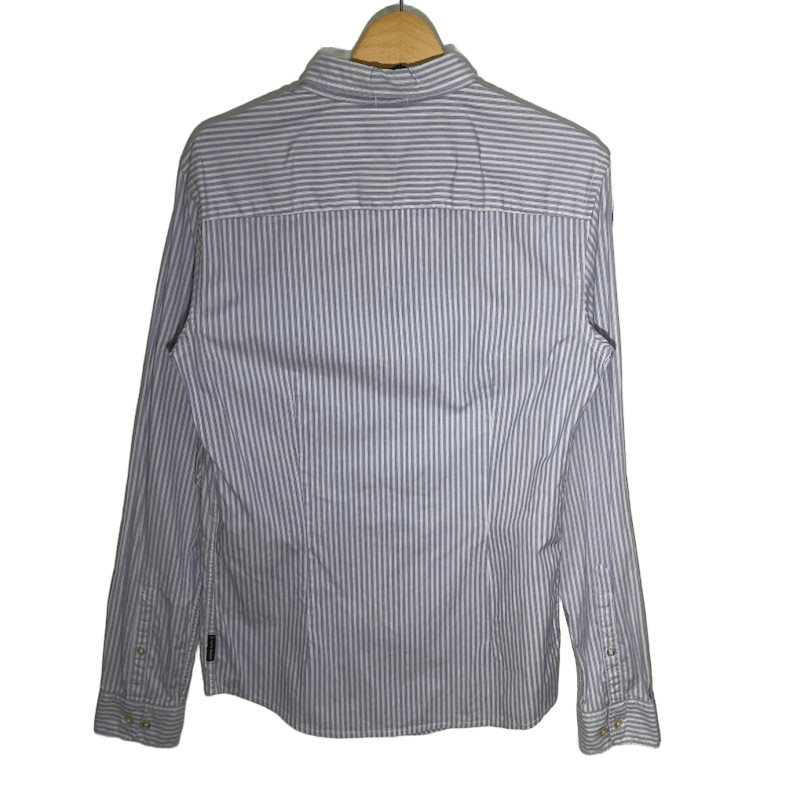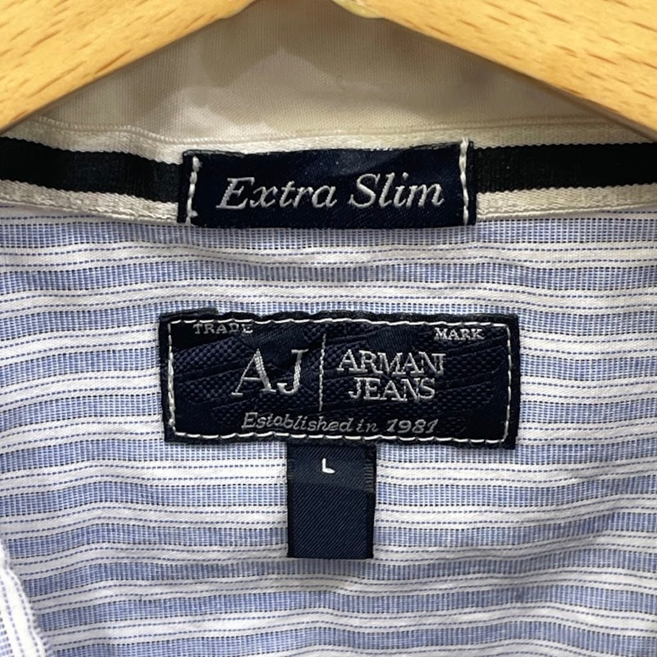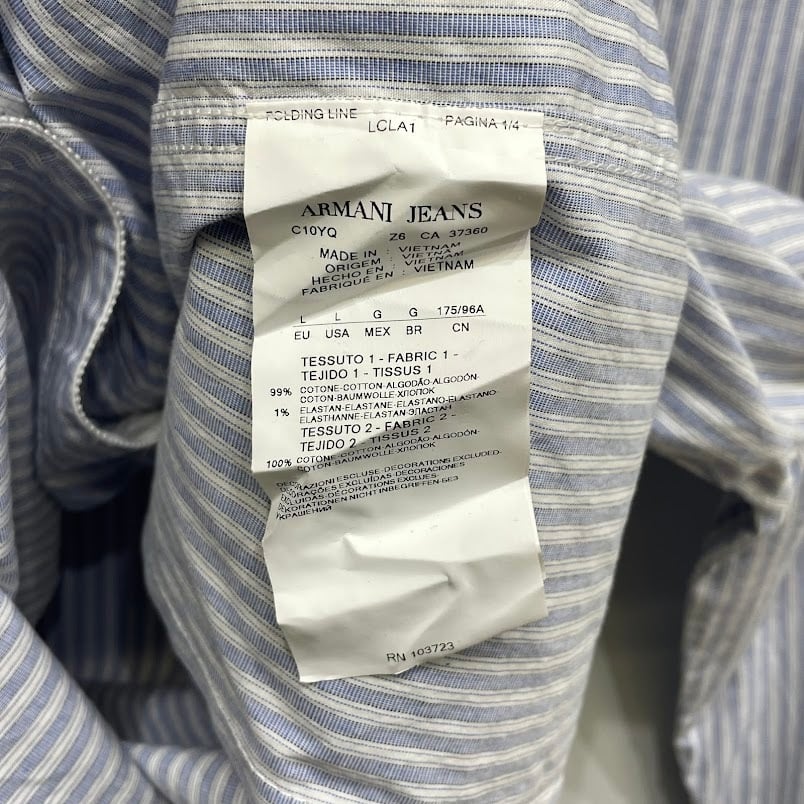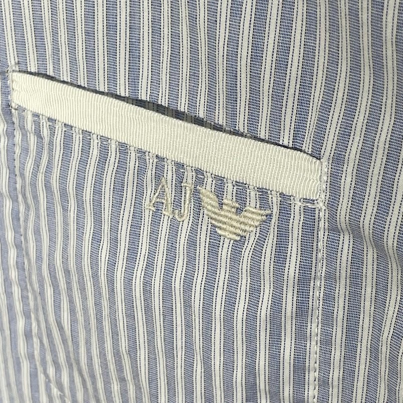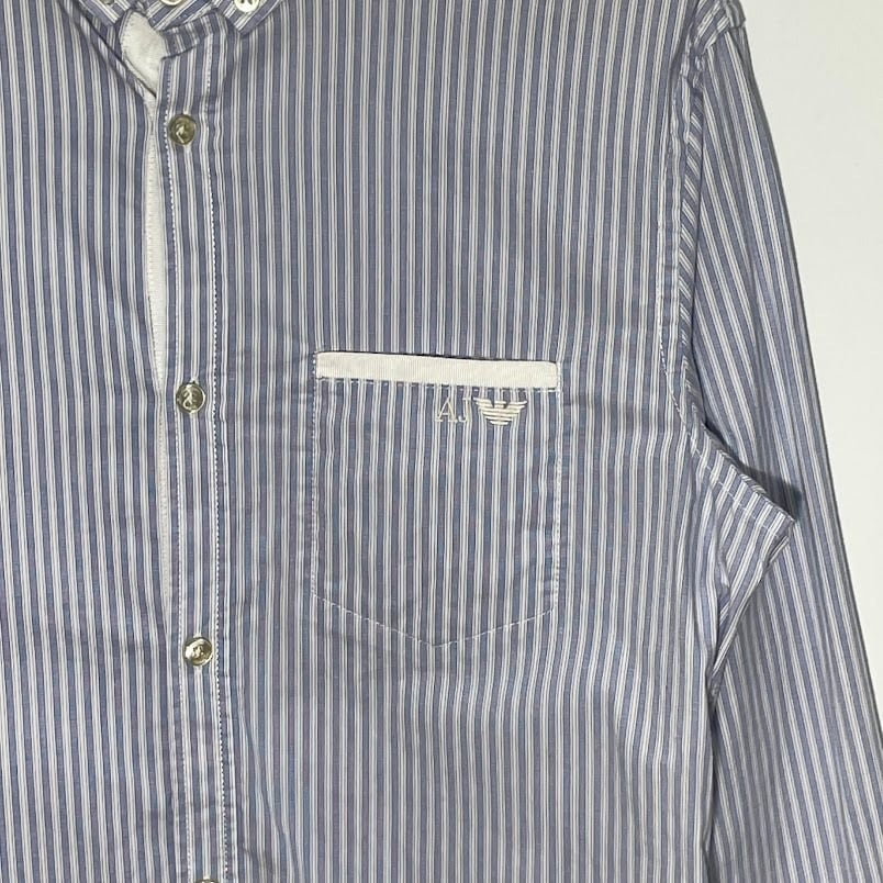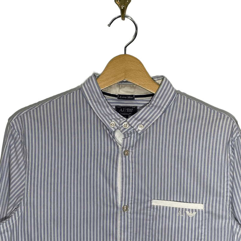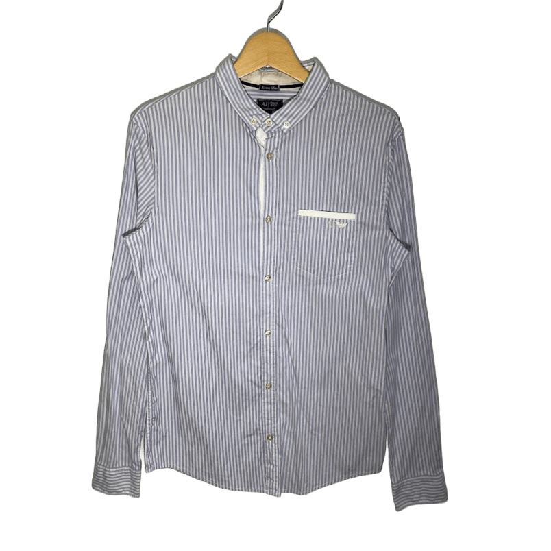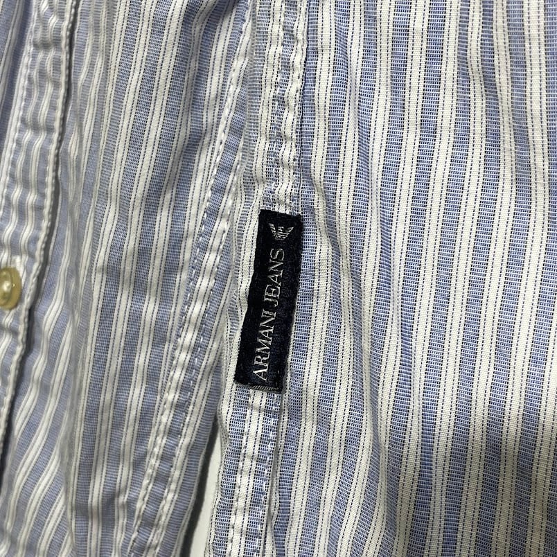 ARMANI JEANS アルマーニジーンズ Extra Slim ストライプシャツ 長袖 シャツ ボタンダウン ワンポイント刺繡 Vietnam製 Lサイズ ライトブルー ホワイト | OASISCLOTHING 海外古着屋【公式】通販サイト