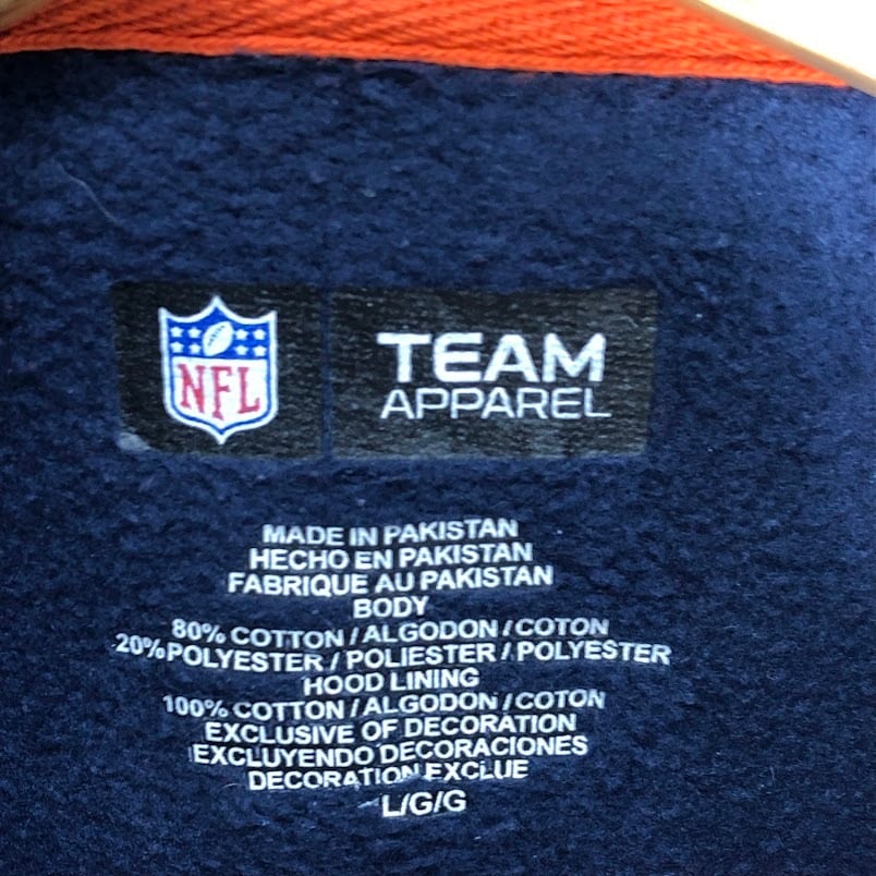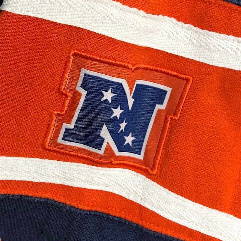 商品名:NFL エヌエフエル BEARS シカゴ ベアーズ アメフト フットボール チーム スポーツ パーカー フーディー プルオーバー 長袖 フロント 袖 刺繍 オーバーサイズ ビッグシルエット Pakistan製 Lサイズ ネイビー オレンジ