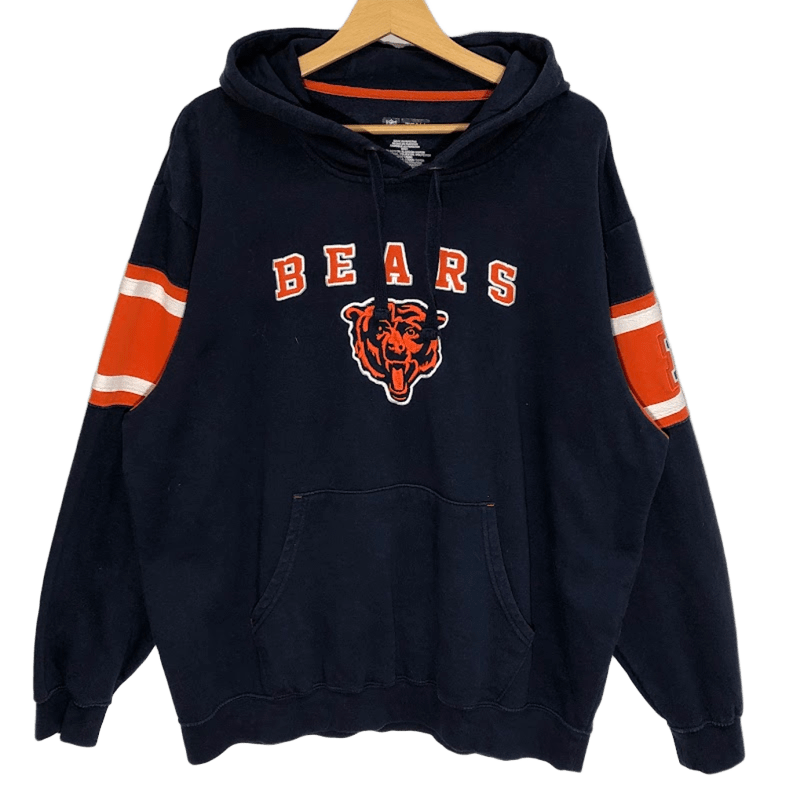 NFL エヌエフエル BEARS シカゴ ベアーズ アメフト フットボール チーム スポーツ パーカー フーディー プルオーバー 長袖 フロント 袖 刺繍 オーバーサイズ ビッグシルエット Pakistan製 Lサイズ ネイビー オレンジ