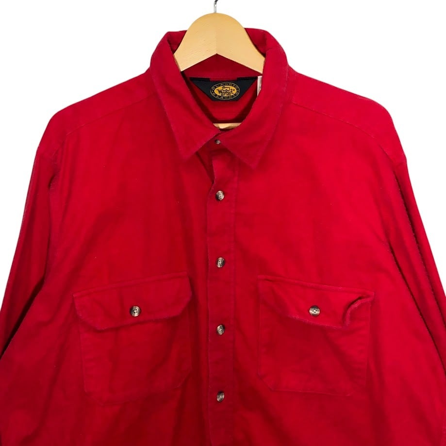 商品名:Woolrich/ウールリッチ 80年代/80’s ヴィンテージ シャモアクロスシャツ 無地 長袖シャツ オーバーサイズ ビッグシルエット USA製 XLサイズ レッド