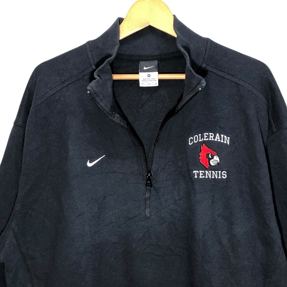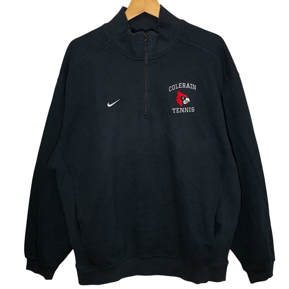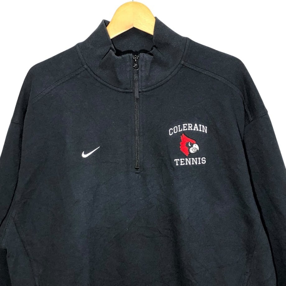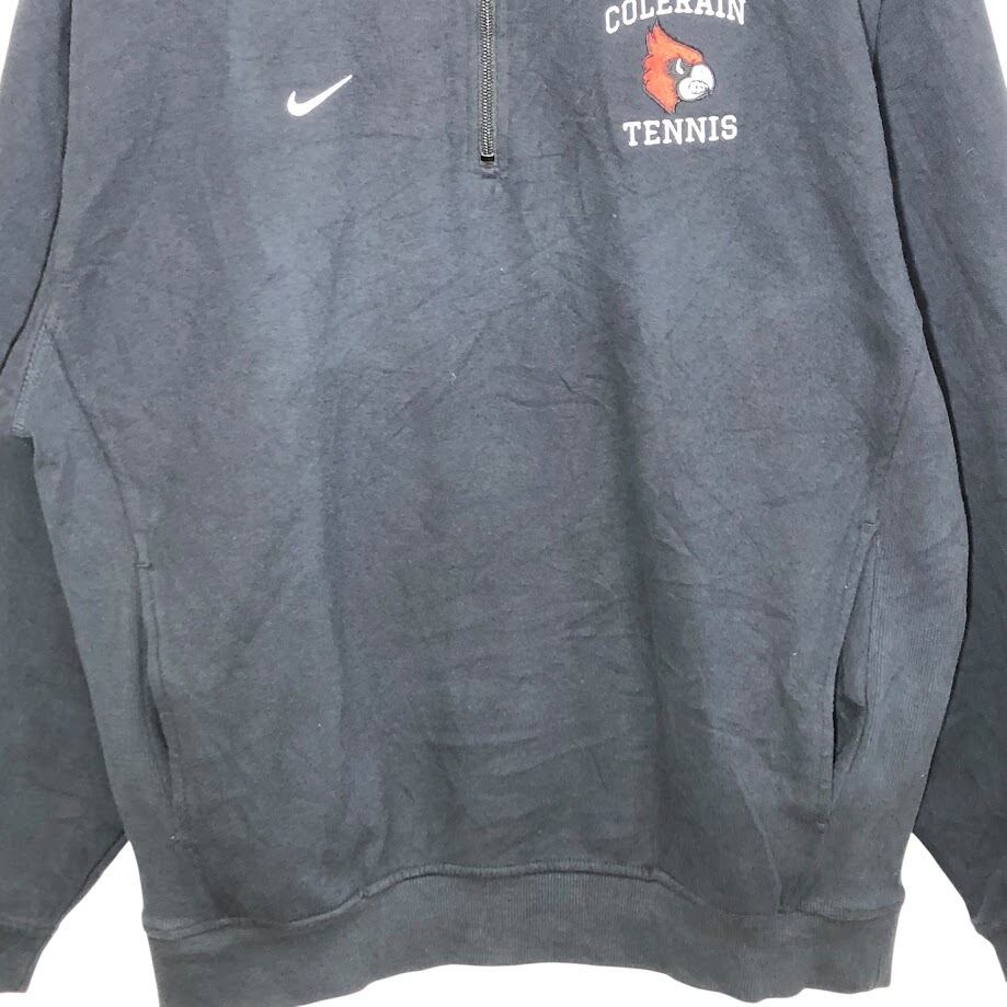 NIKE/ナイキ 00年代ヴィンテージ/00’s COLERAIN TENNIS スポーツチーム テニス ハーフジップ スウェット トレーナー 長袖 ワンポイント刺繡 VIETNAM製 Lサイズ ブラック